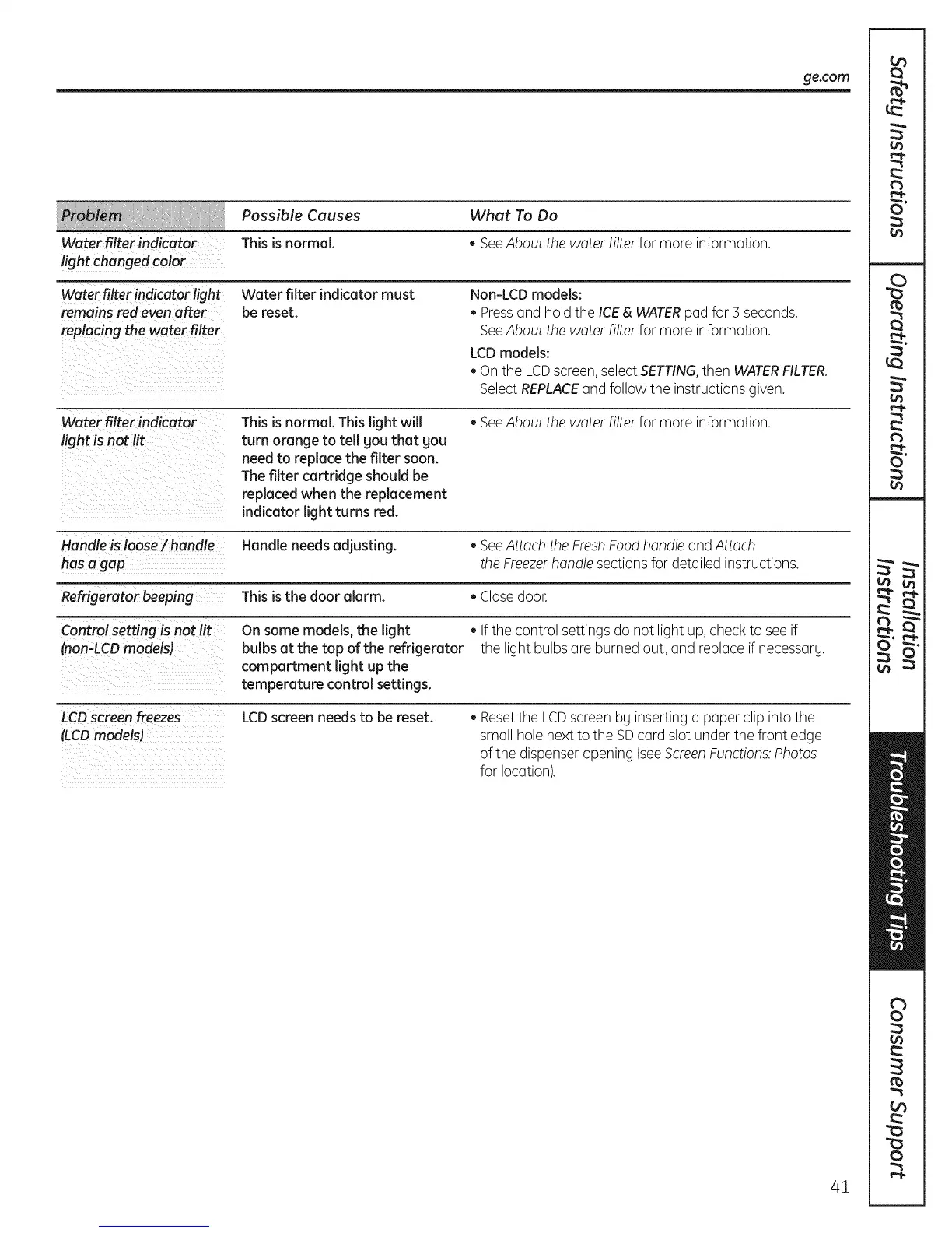 Water filter indicator light Water filter indicator must Non-LCDmodels: