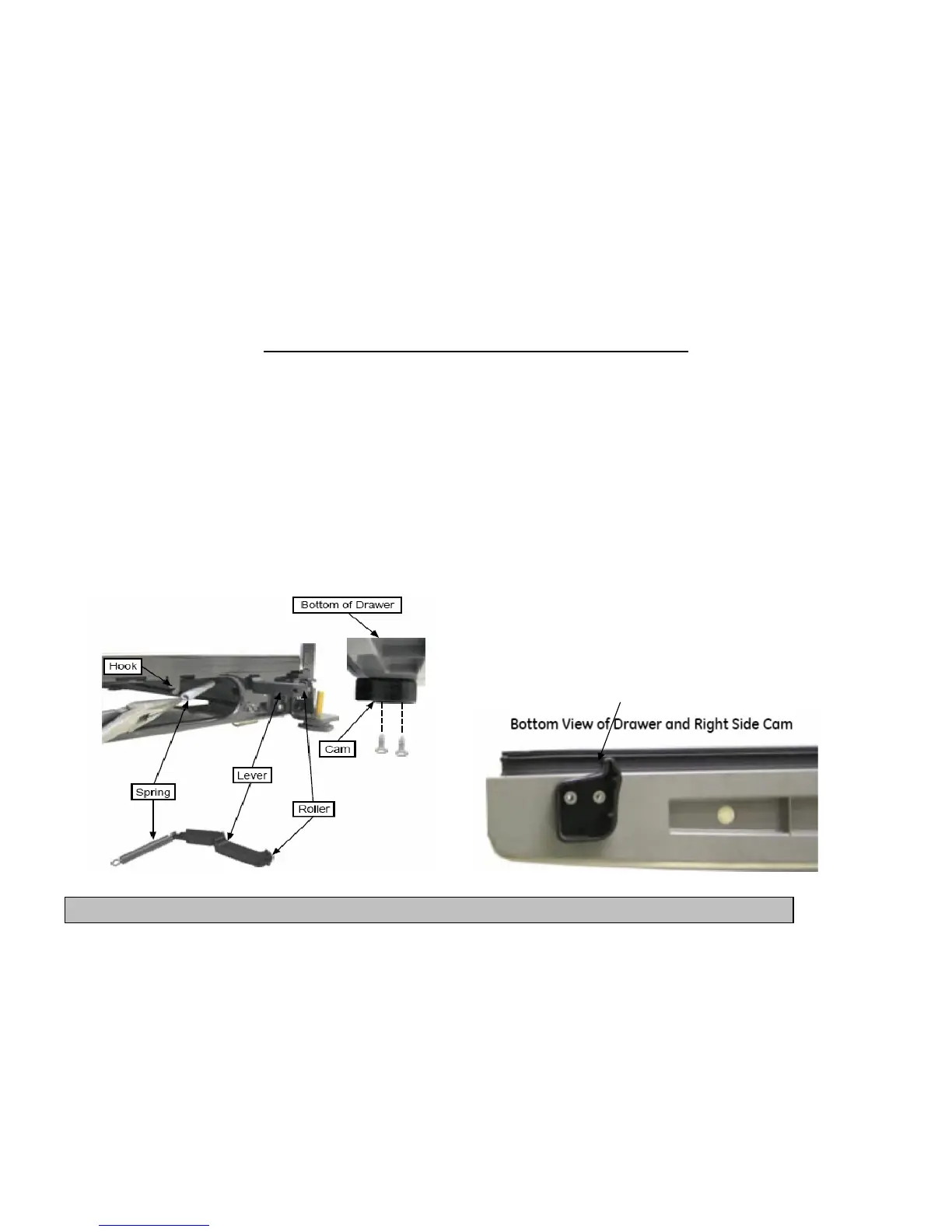 to the bottom of the drawer with two T-20 Torx screws. The lever interacts