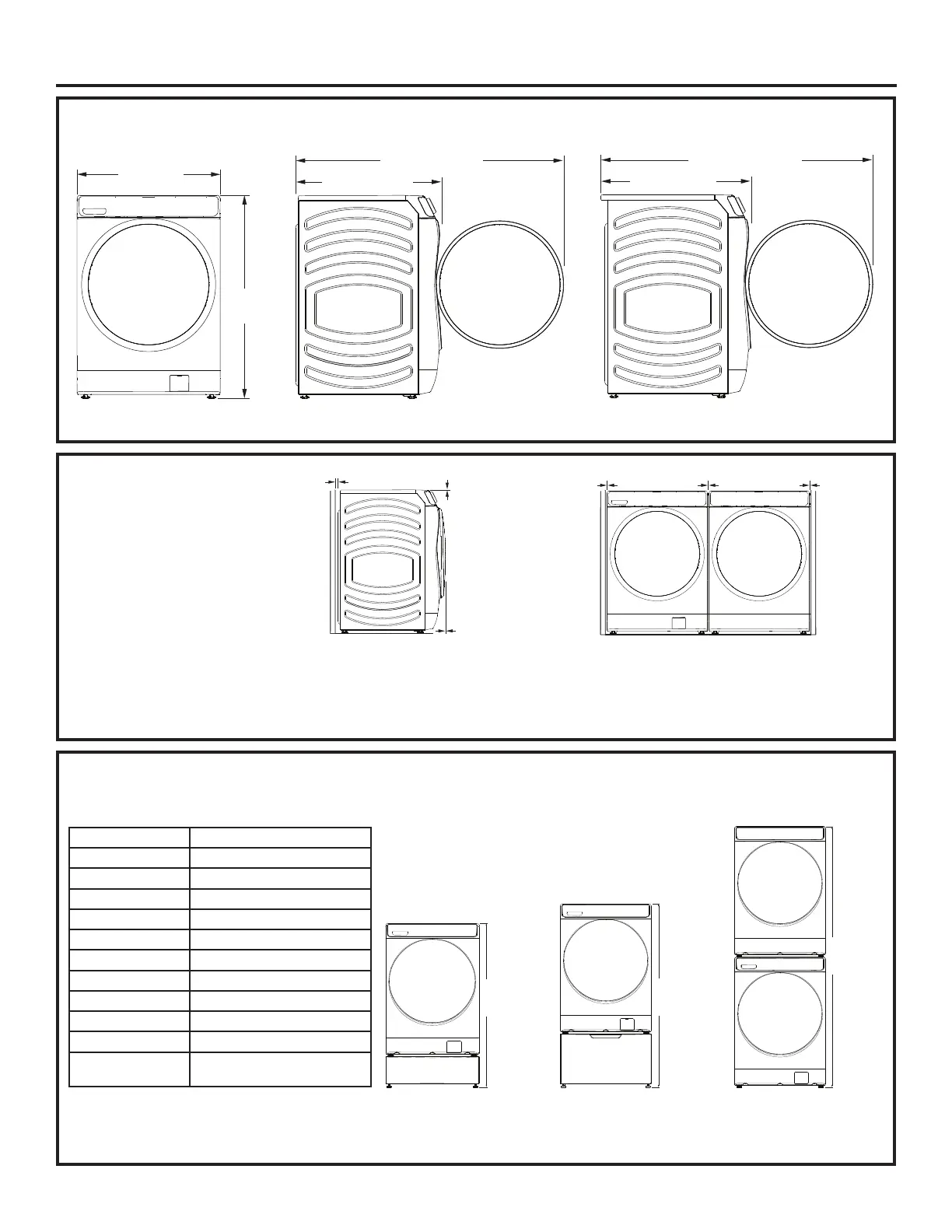 * Avec pieds de nivellement rétractés. Voir la section DIMENSIONS DE LA LAVEUSE ci-dessus pour les dimensions de