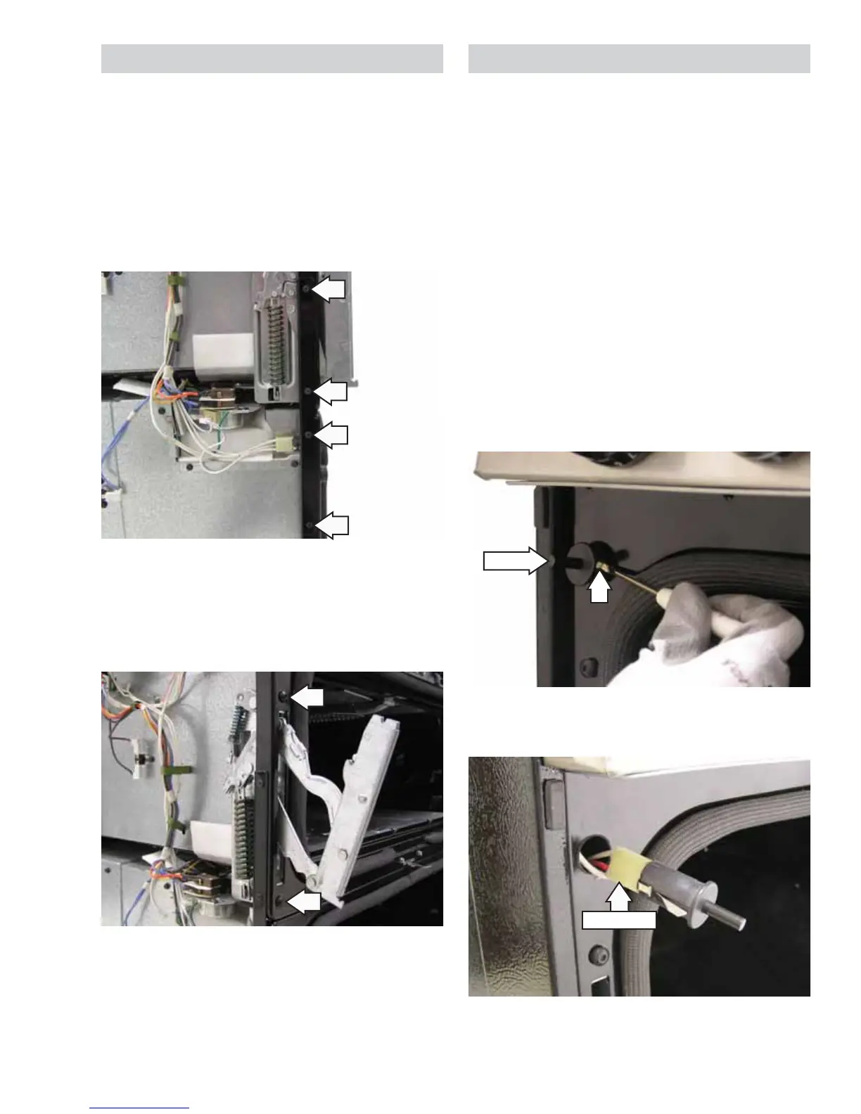 The upper oven door hinge is attached to the frame