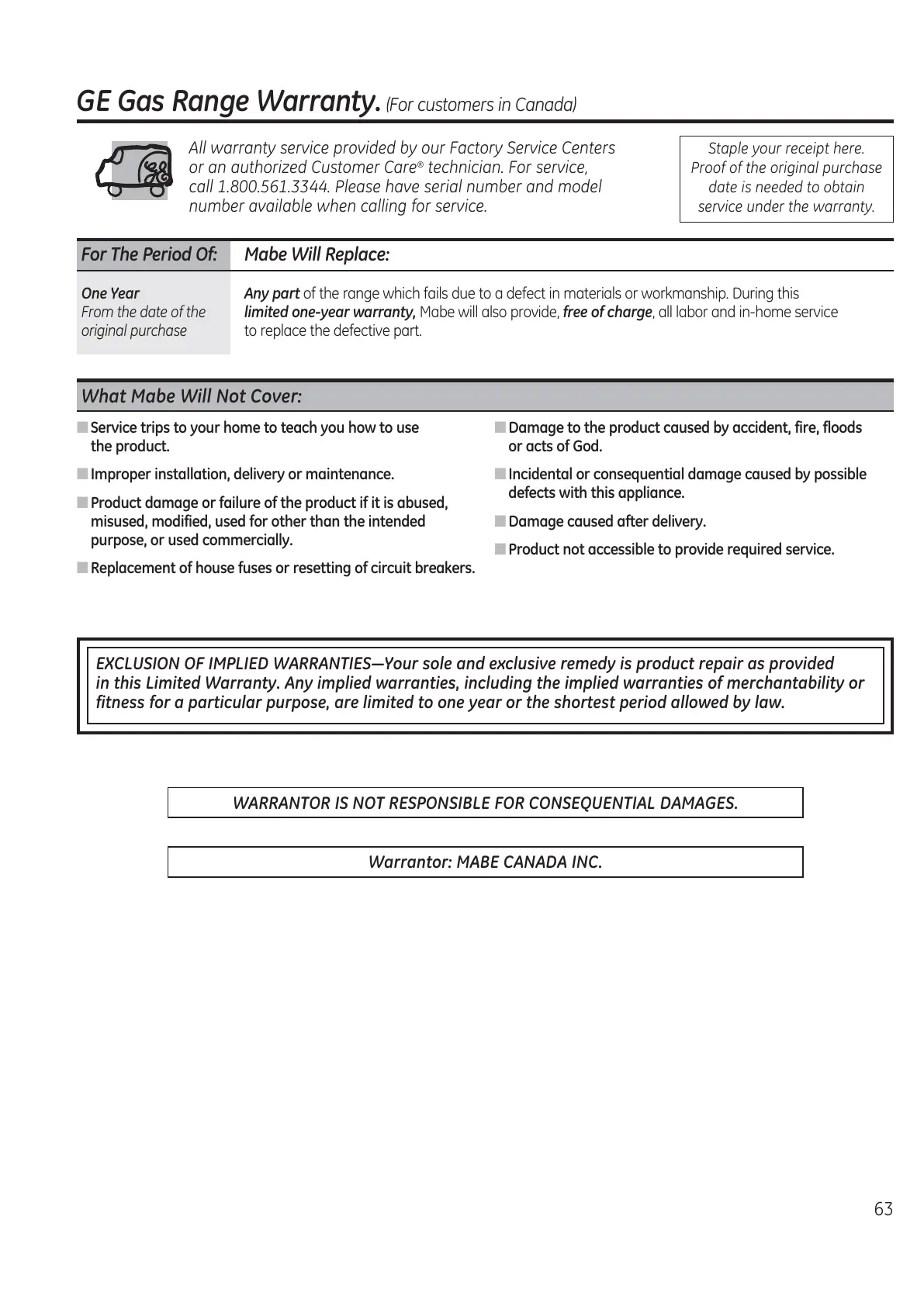 *(*DV5DQJH:DUUDQW\)RUFXVWRPHUVLQ&DQDGD