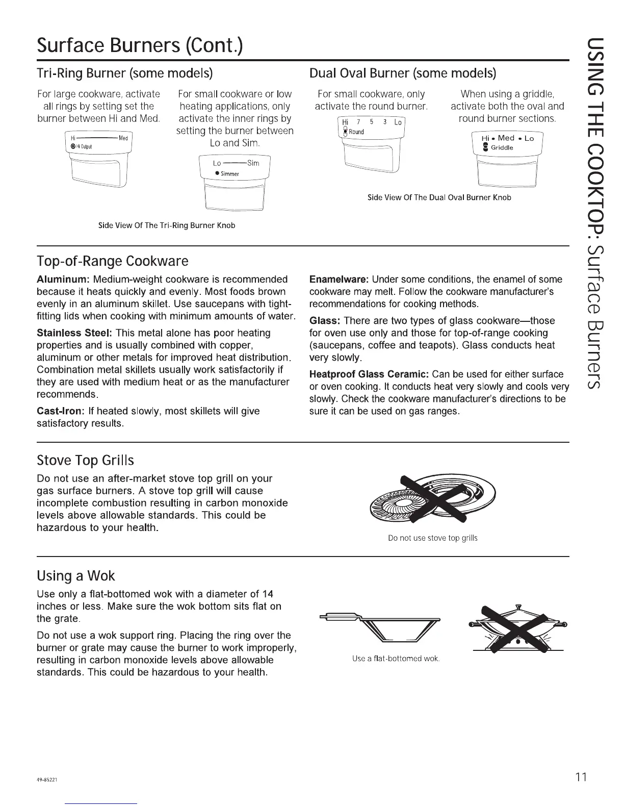 GE PGB911SEJSS - Tri-Ring Burner; Dual Oval Burner; Top-Of-Range Cookware; Stove Top Grills