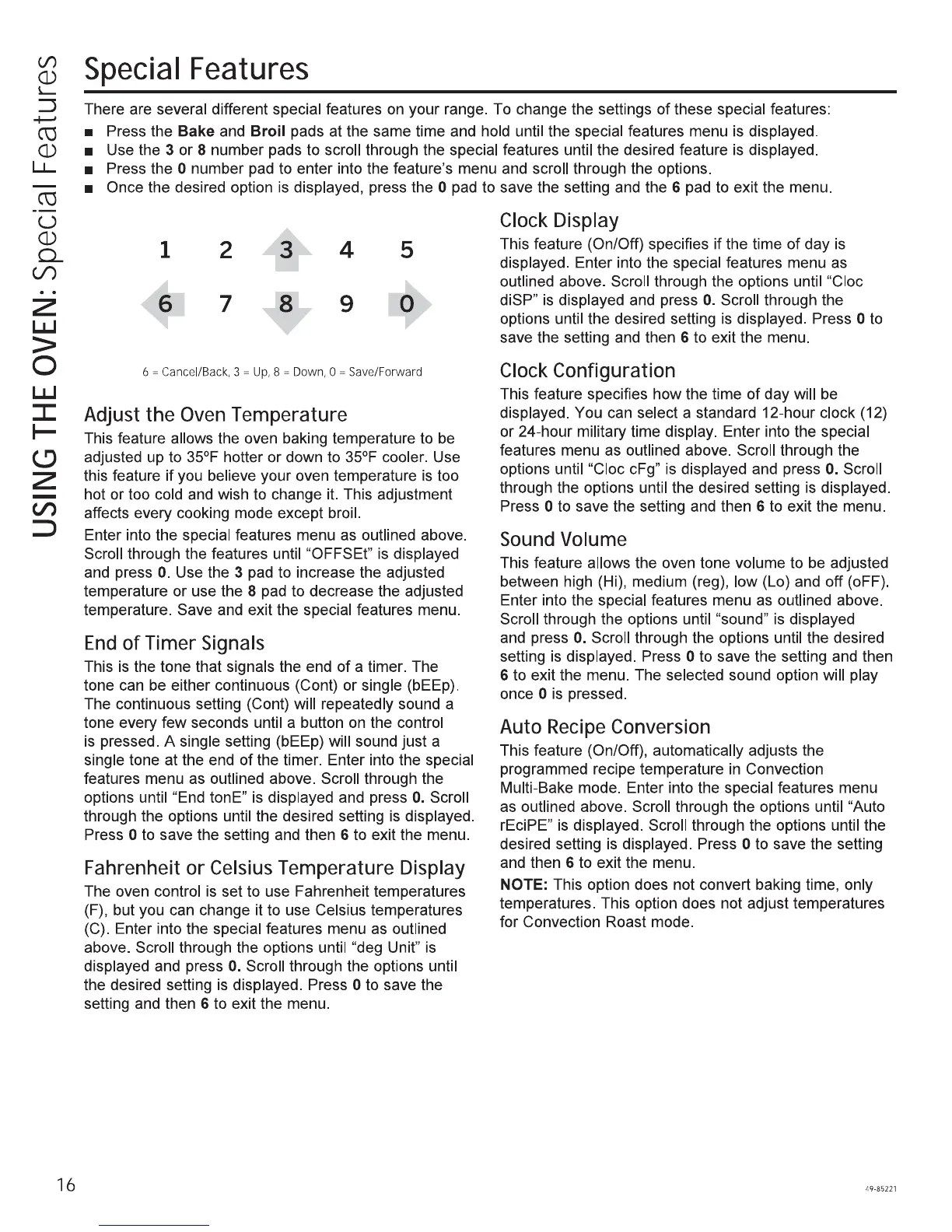 GE PGB911SEJSS - Special Features; Adjust the Oven Temperature; End of Timer Signals; Fahrenheit or Celsius Temperature Display