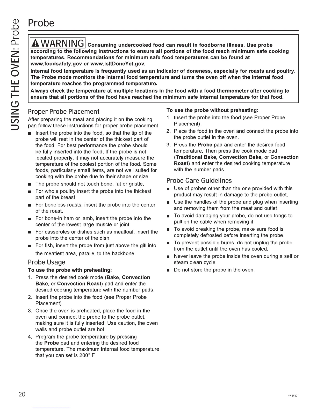 GE PGB911SEJSS - Proper Probe Placement; Probe Usage; Probe Care Guidelines