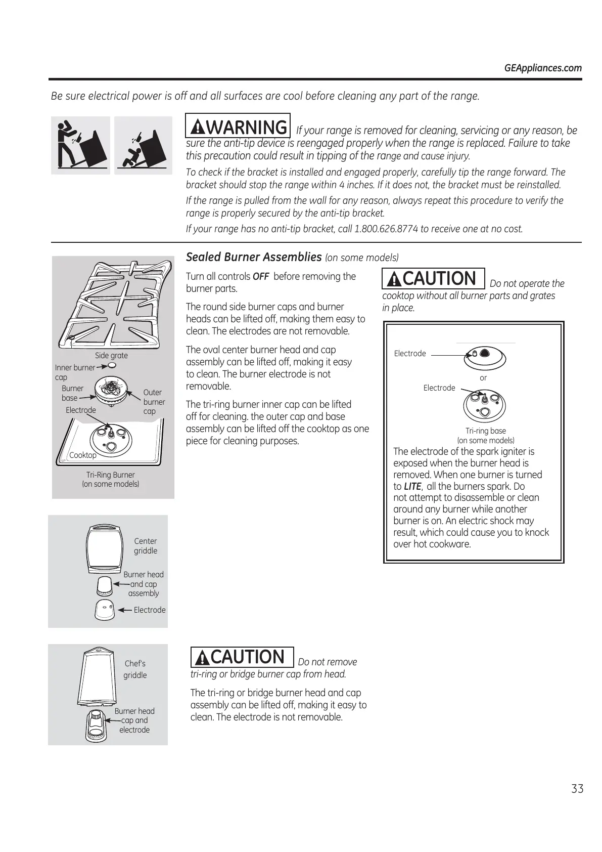 %HVXUHHOHFWULFDOSRZHULVRIIDQGDOOVXUIDFHVDUHFRROEHIRUHFOHDQLQJDQ\SDUWRIWKHUDQJH