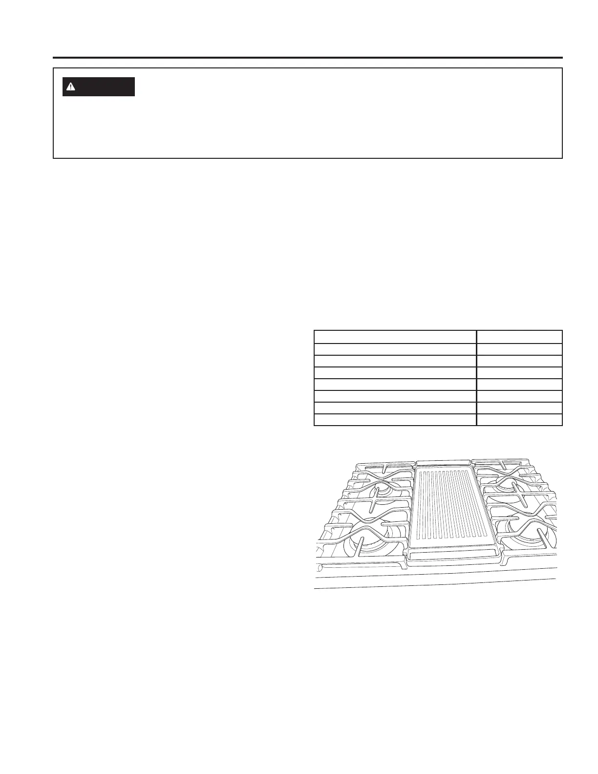 it with the griddle. Do not turn on the center burner until you are certain the griddle has been positioned correctly.