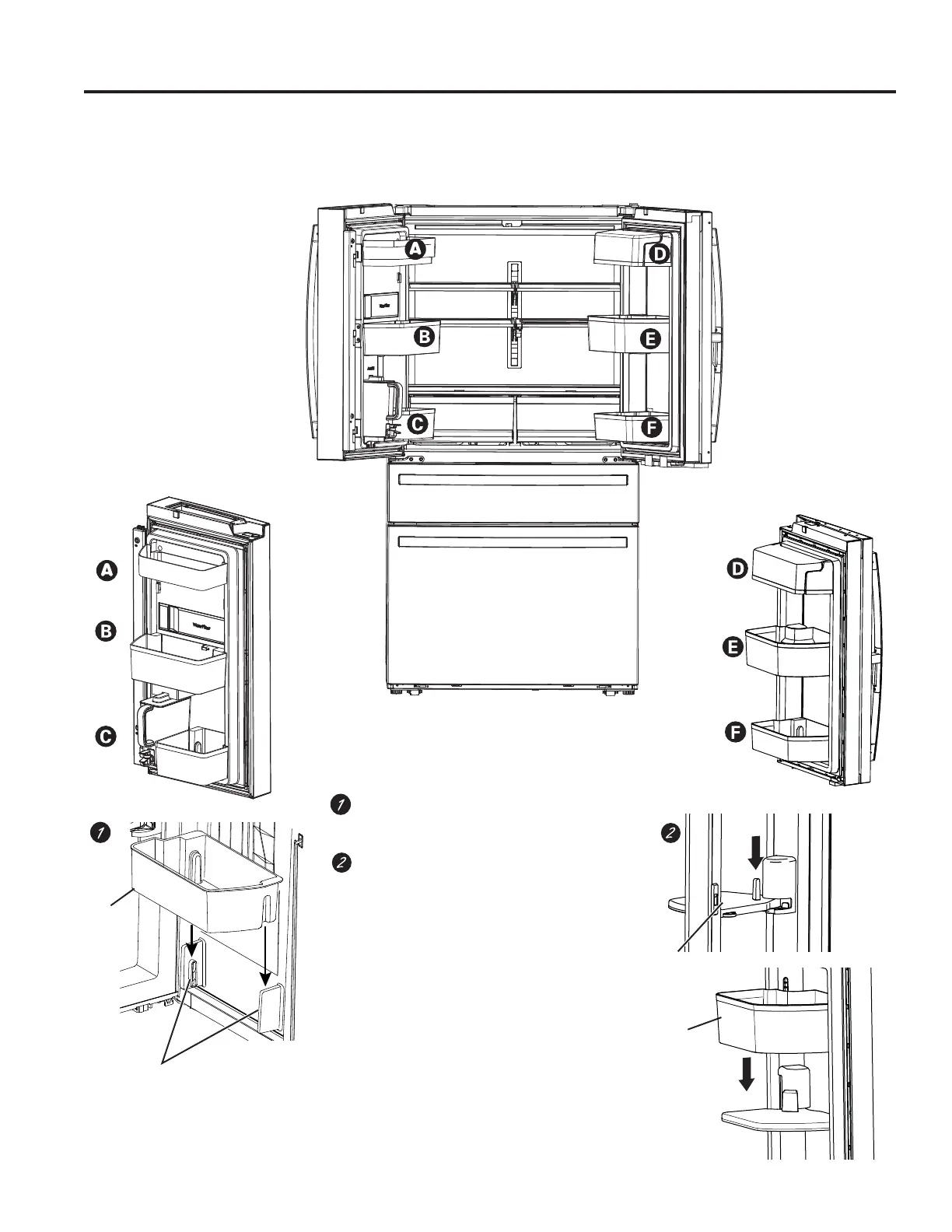 Pour placer le bac pivotant dans la porte :