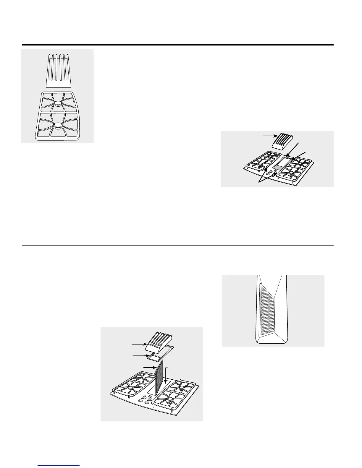 Las rejillas del quemador, la parrilla de ventilación y la junta
