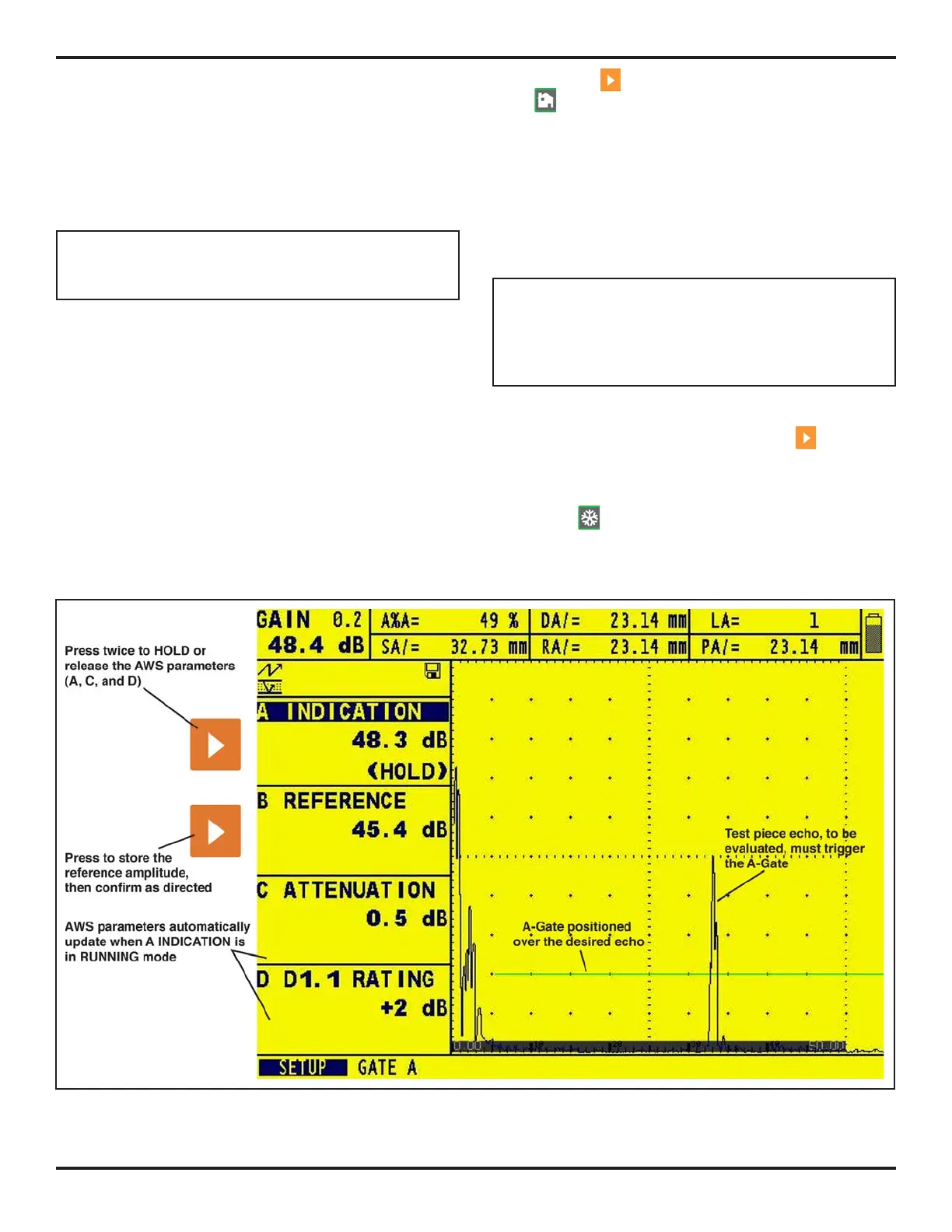 FIGURE 5-12—After adjusting the gain so that the reference echo’s peak is between 20% and 90% of full screen height,
