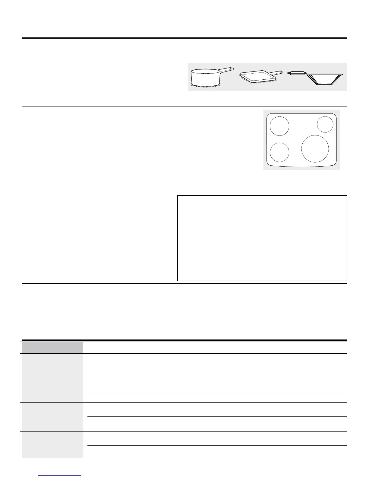 tamaños de las bobinas de inducción. Los recipientes de cocción de mayor tamaño que los gráficos