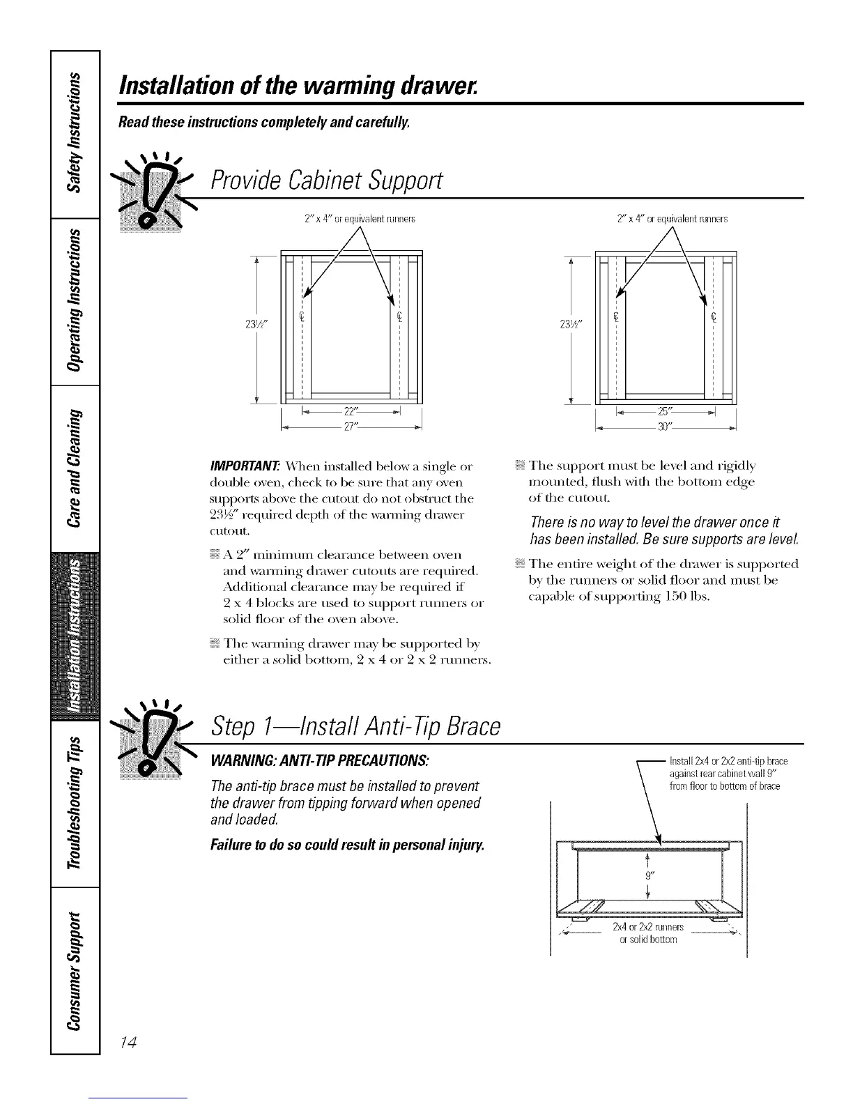 Step I--Install Anti-Tip Brace