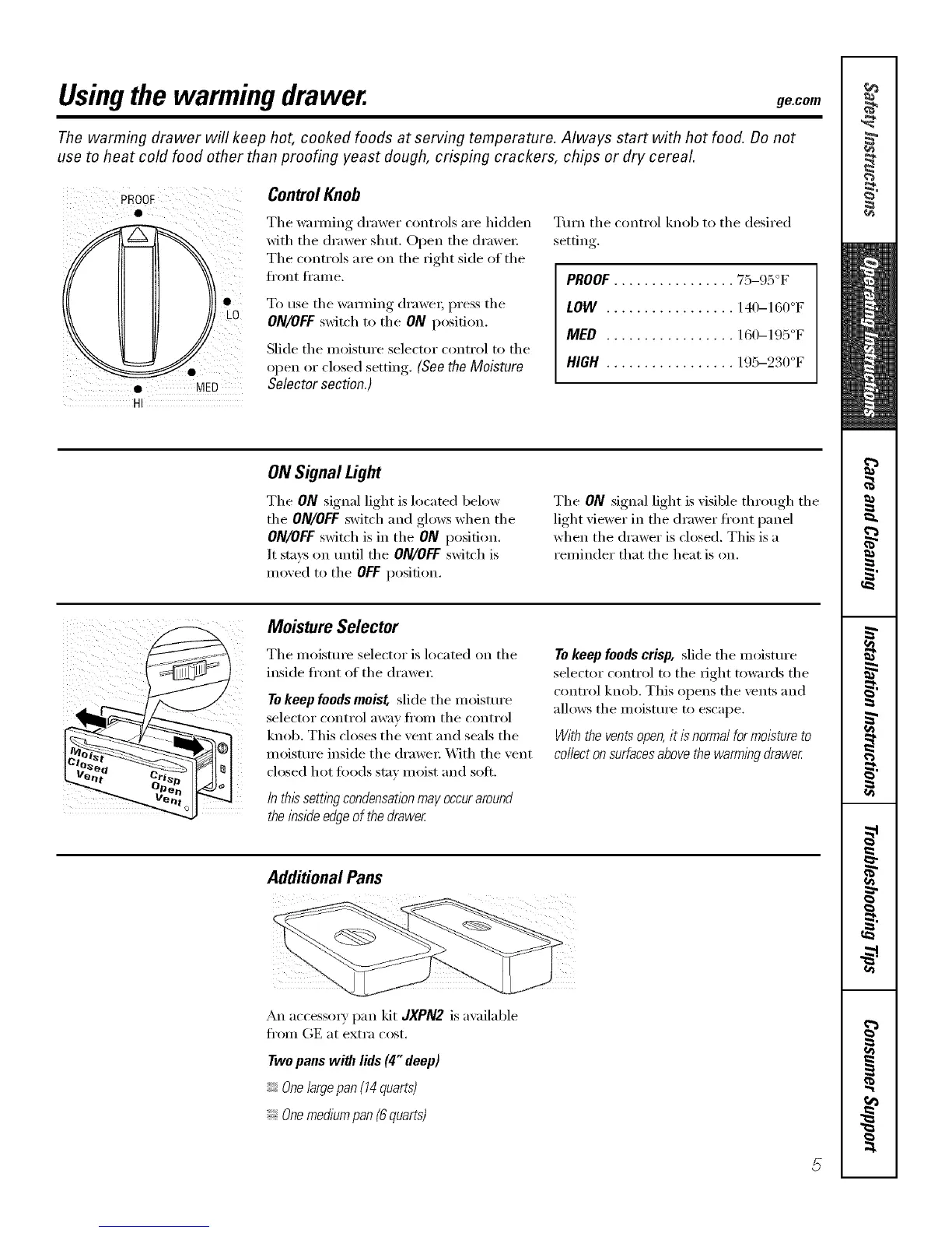 The warming drawer will keep hot, cooked foods at serving temperature. Always start with hot food. Do not