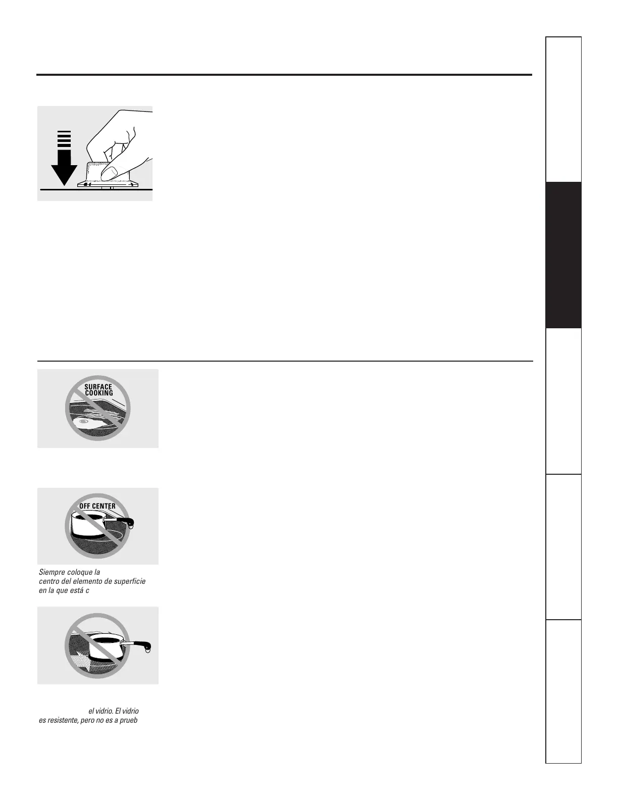 cocinado. Evite colocar utensilios que podrían
