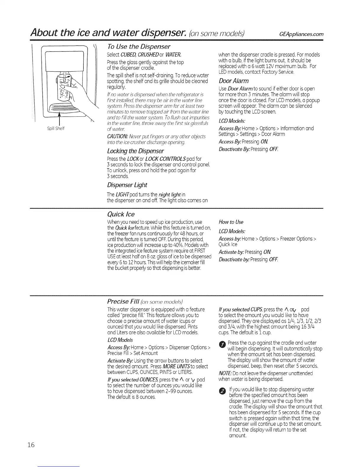 About the ice and water dispenser. (onsomemodels} GEAppliances.com