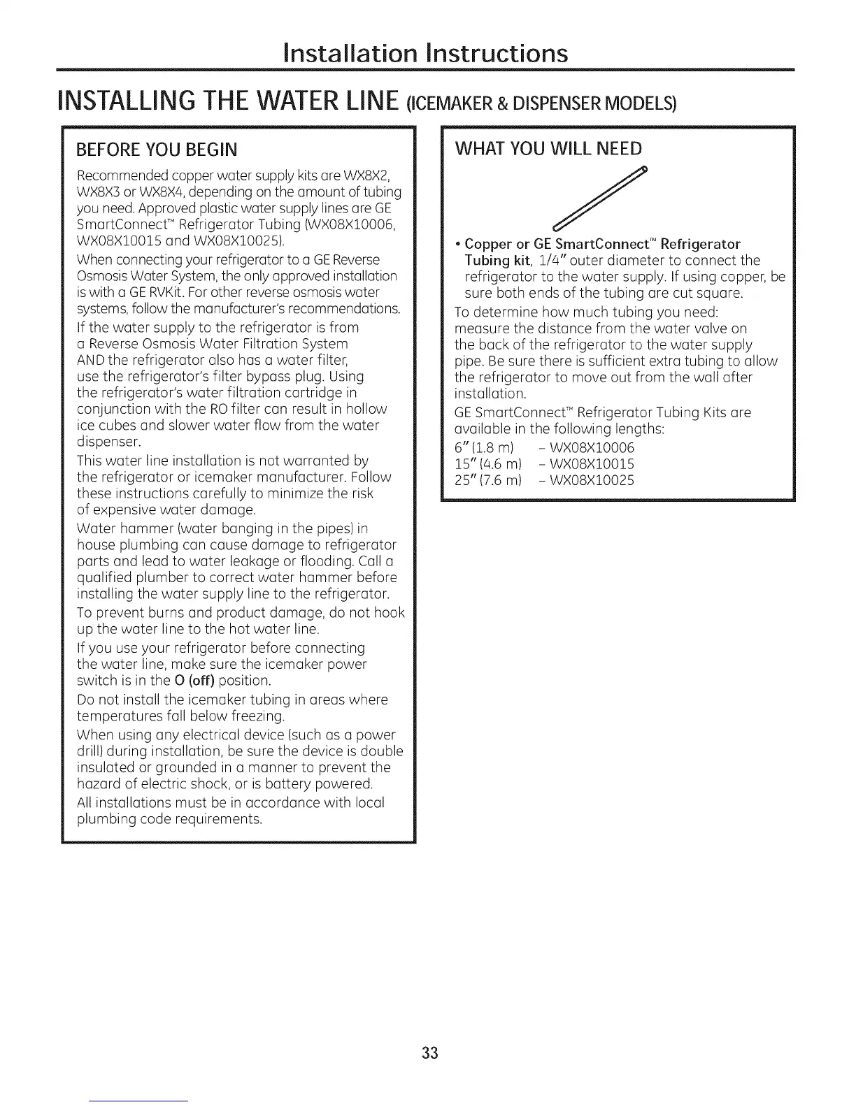 GE SmartConnect TMRefrigerator Tubing Kits ore