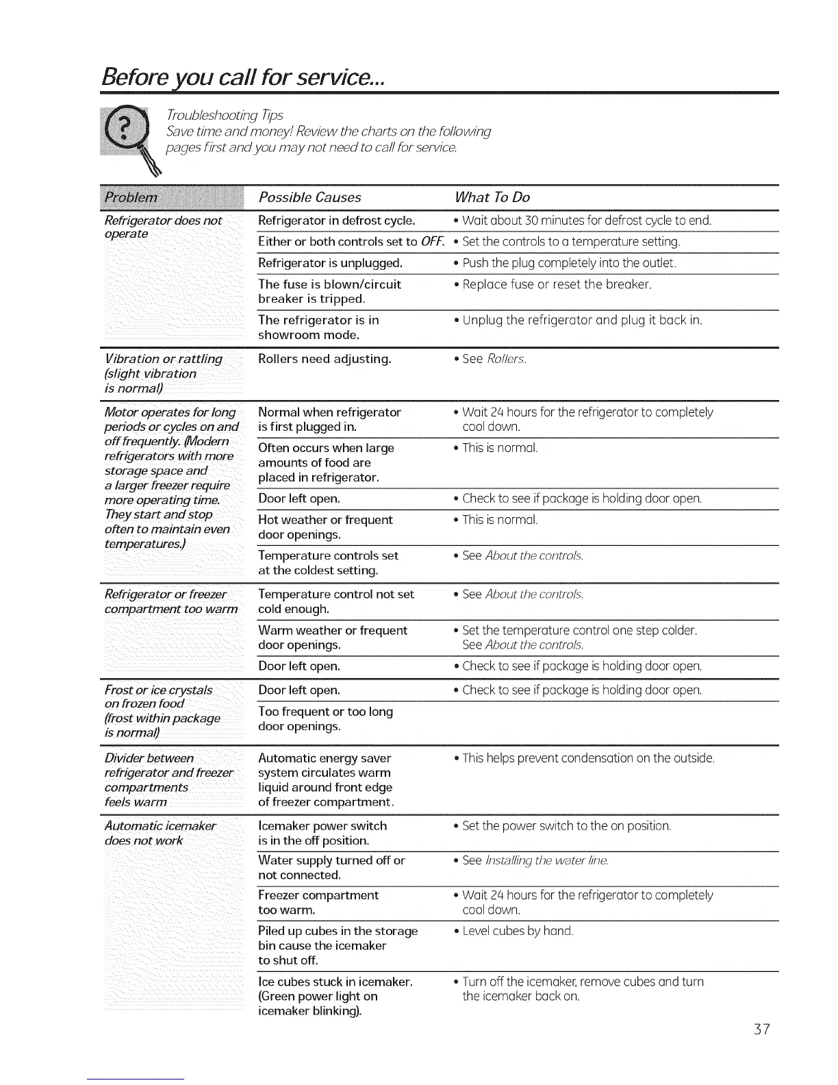 Refrigerator does not Refrigerator in defrost cycle. • Wait (]bout 30 minutes for defrost cycle to end.