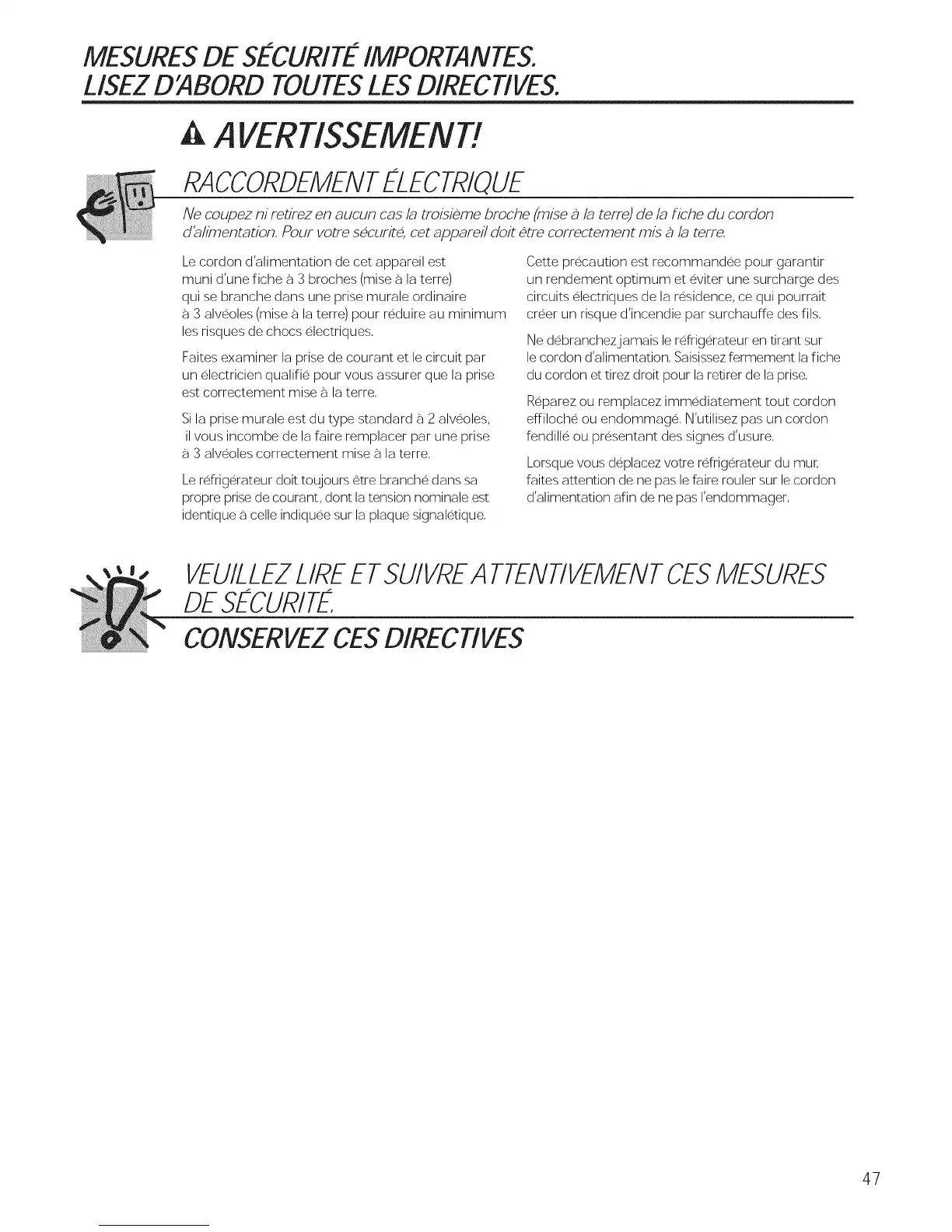 d'_l/mentat/on. Pour votre secur/te, cet appare/I do/t _tre correctement m/s b la terre.