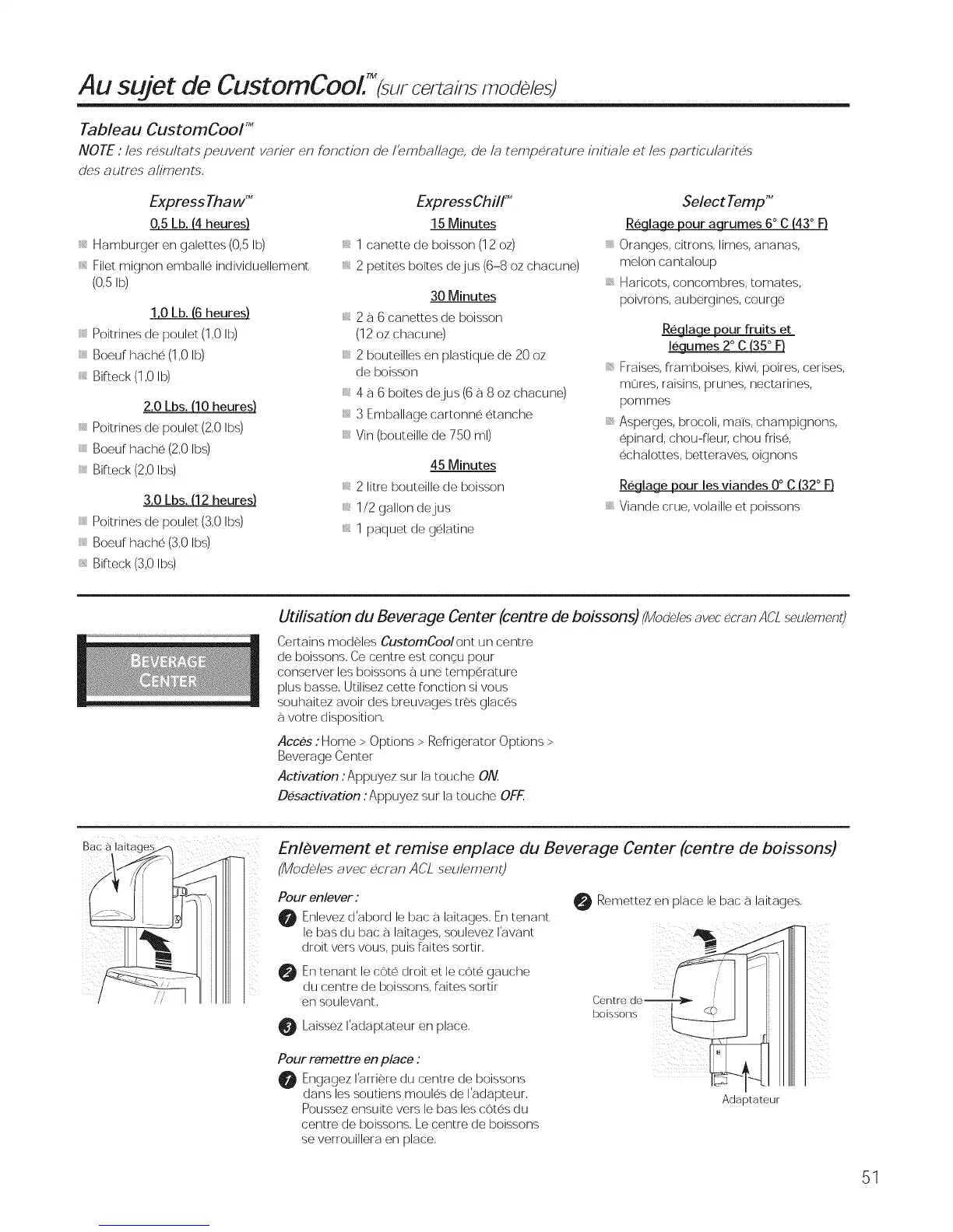 Utilisation du Beverage Center (centre de boissons) (Moddesawe _cranACt seu/ement)