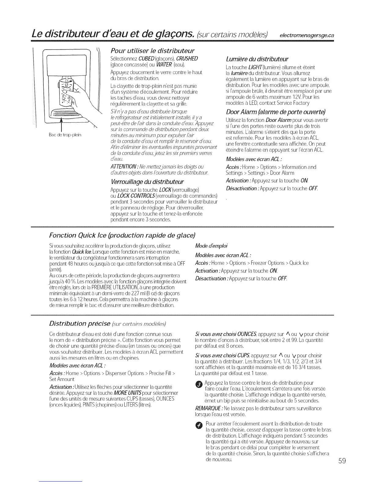 Le distributeur d'eau et de glagons. (surterrainsmoddHs} electromenagersge.ca