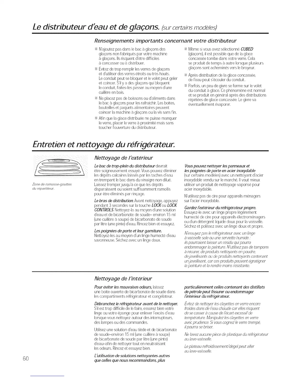 Entretien et nettoyage du refrigerateur.