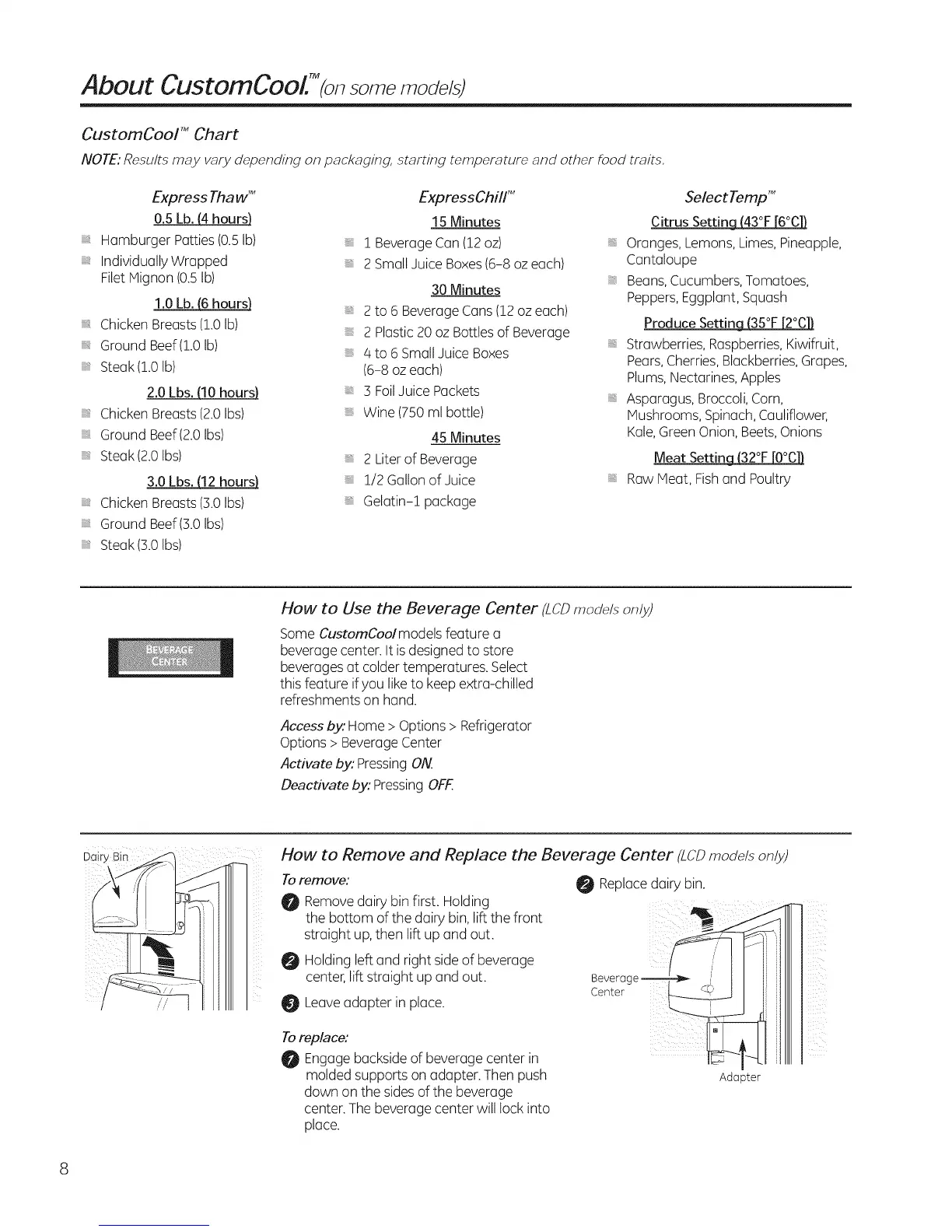 How to Use the Beverage Center (LCDmodels on/y)
