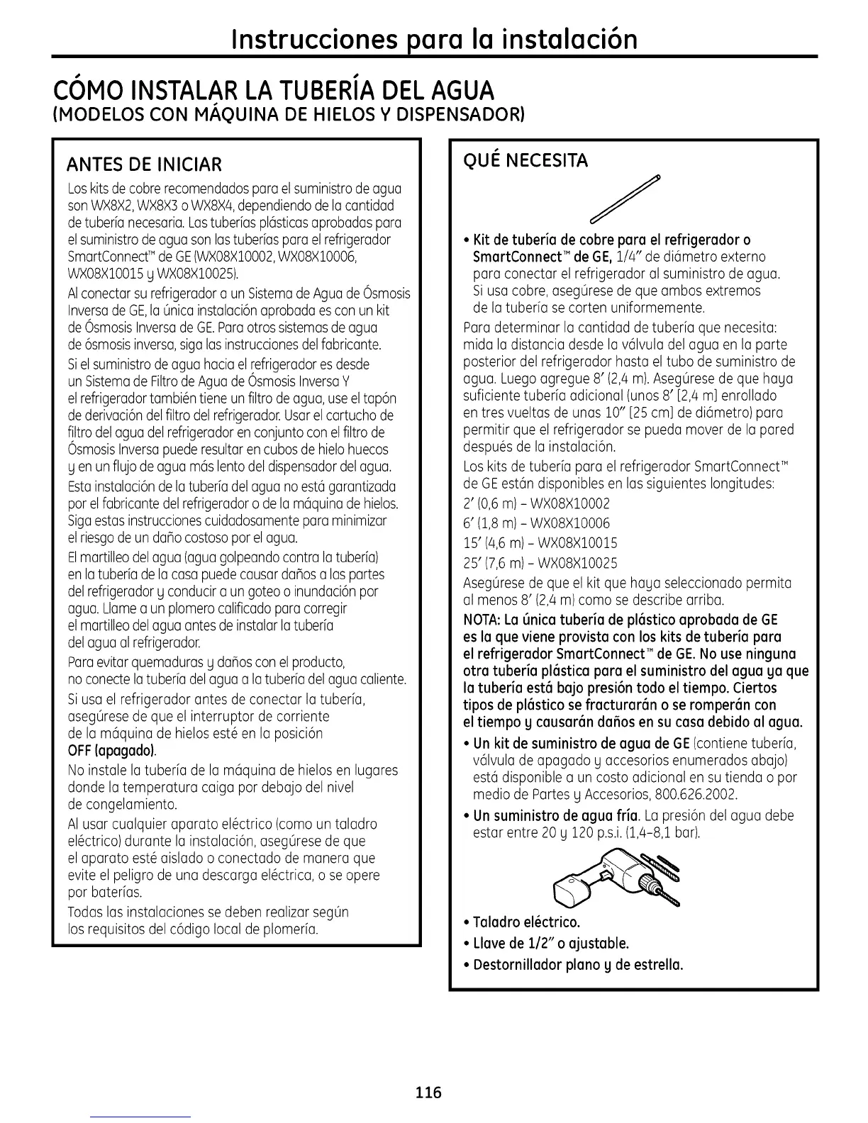 NOTA:La L]nica tuberia de pl6stico aprobada de GE