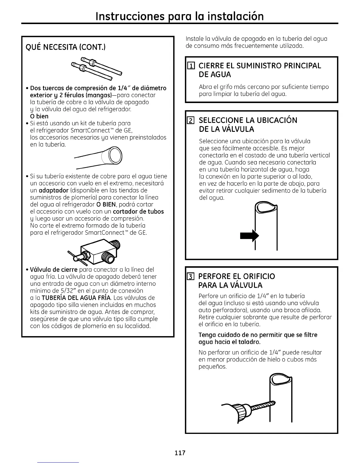 • Dos tuercas de compresi6n de 1/4" de di6metro
