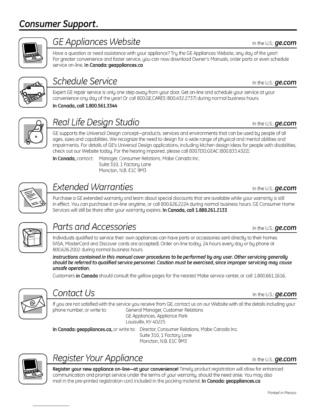 In Canada: geappliances.ca, or write to: Director,Consumer Relations,MobeCanada Inc.