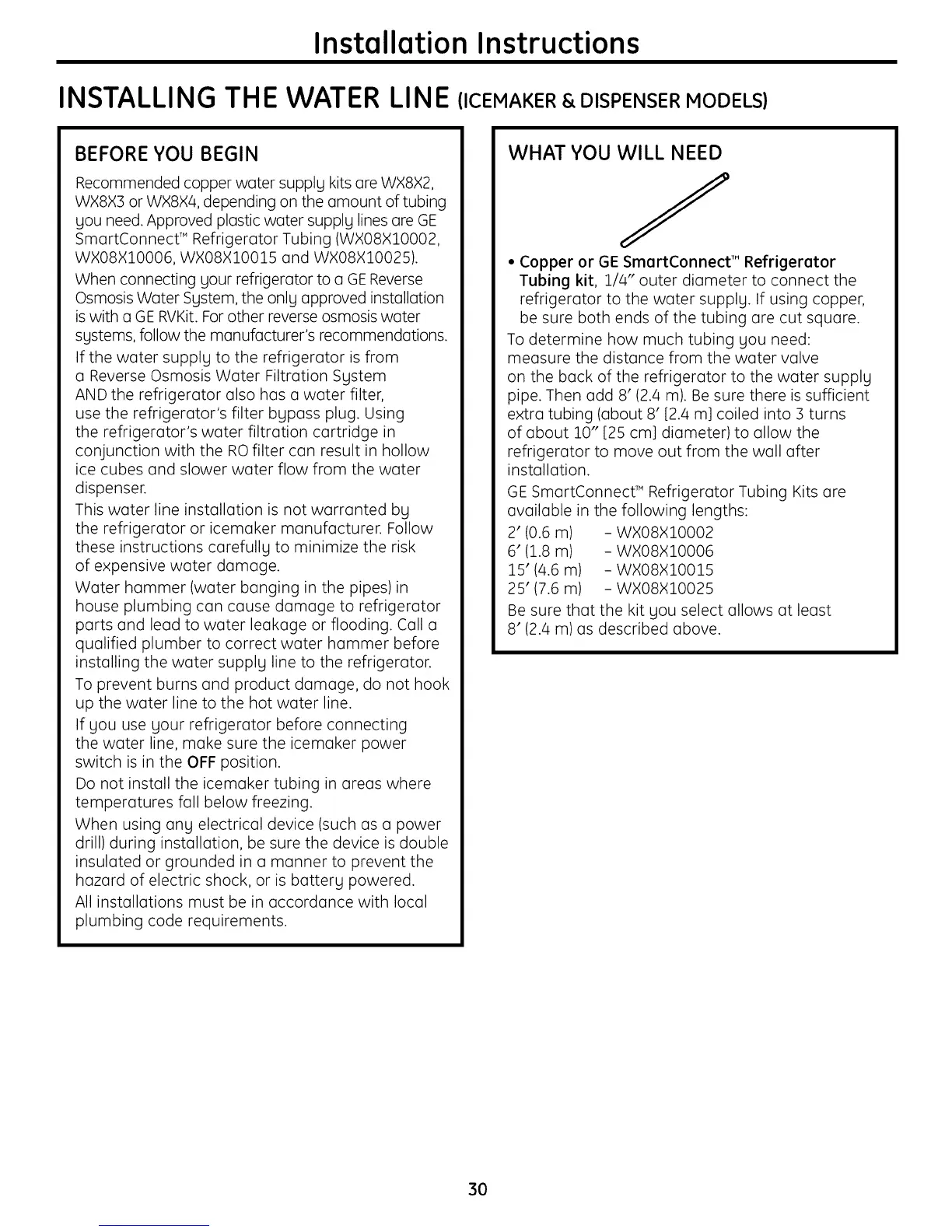 SmartConnect TMRefrigerator Tubing (WXO8XIO002,