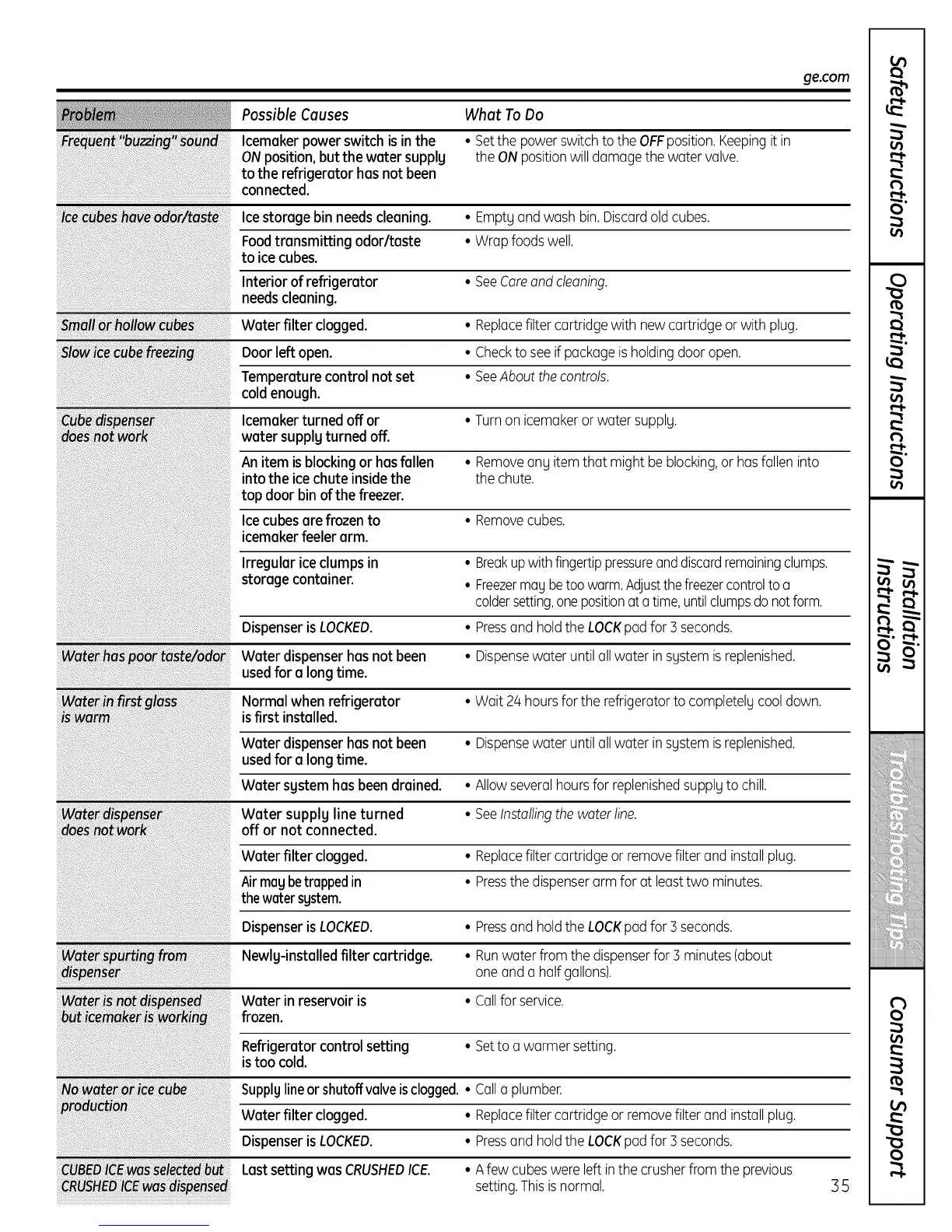 Water filter clogged. • Replacefilter cartridgeor removefilter and installplug.