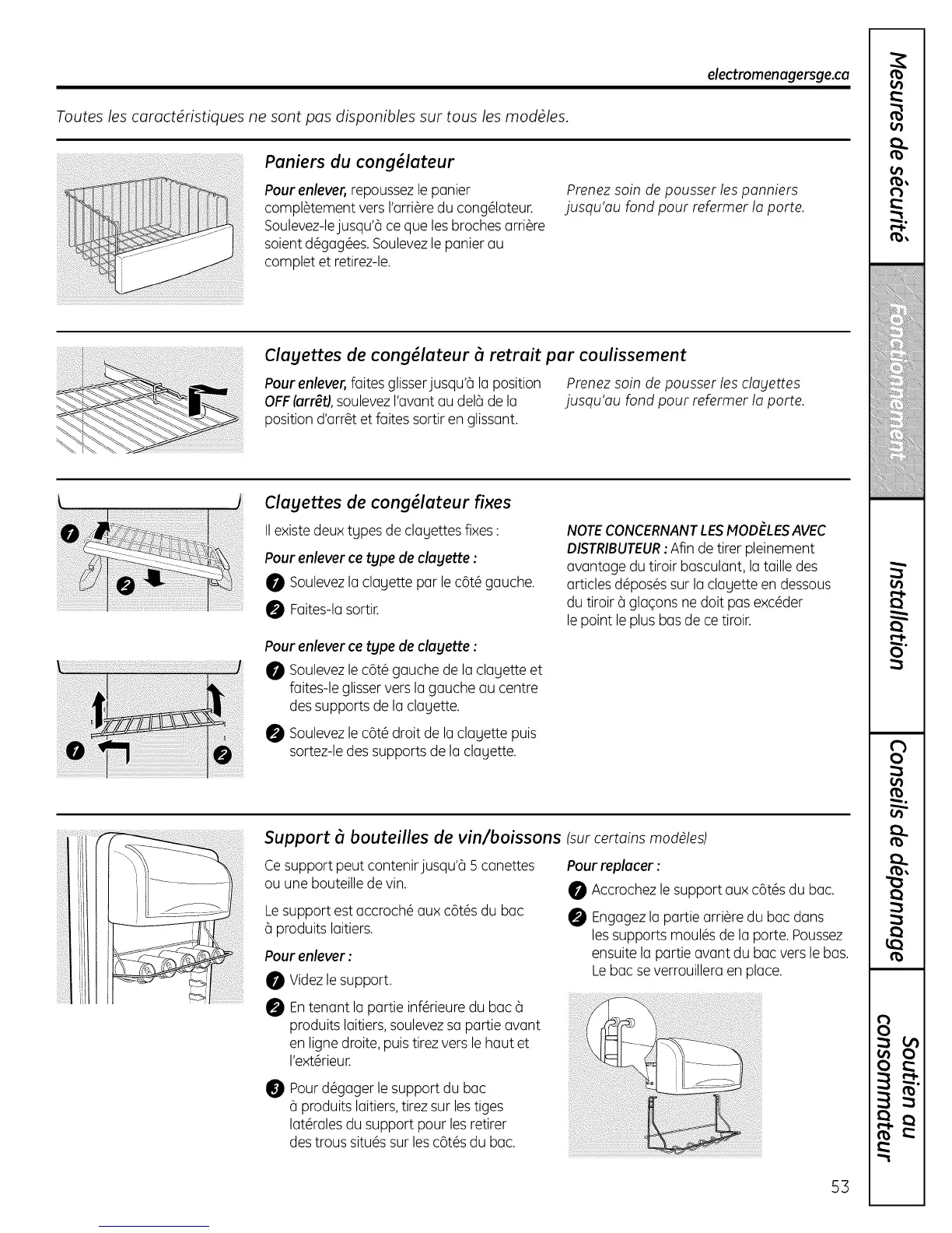 Pour enlever,faites glisserjusqu'6 la position Prenezsoin de pousser les clayettes