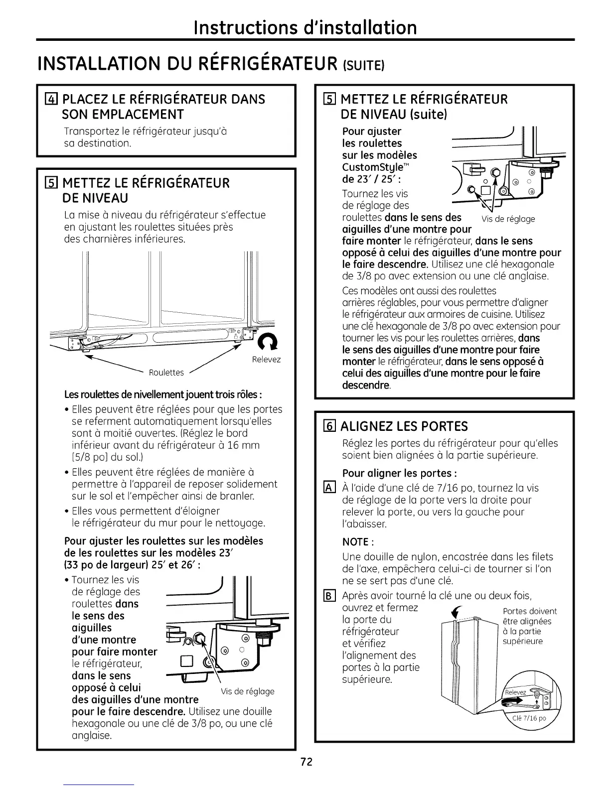 INSTALLATION DU REFRIGERATEUR (SUITE)