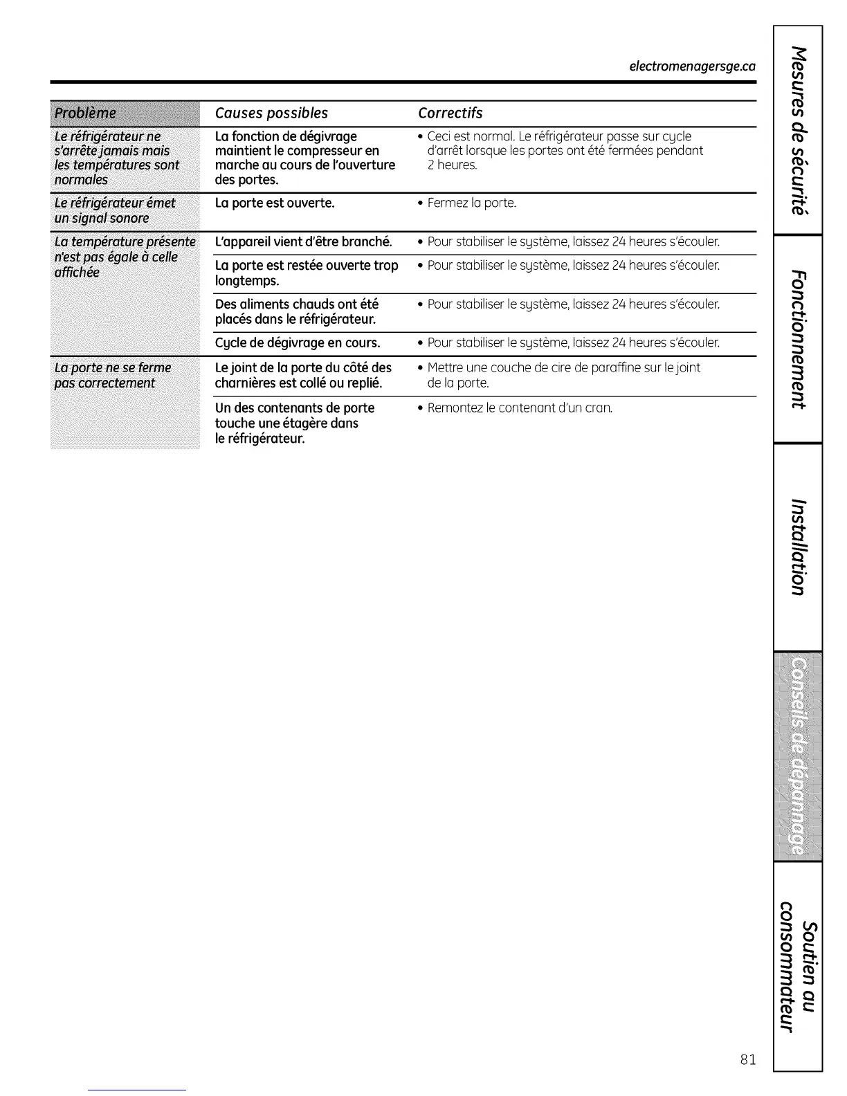 Cycle de d_givrage en cours. • Pourstabiliser le sgst_me, laissez24 heures s'_couler.