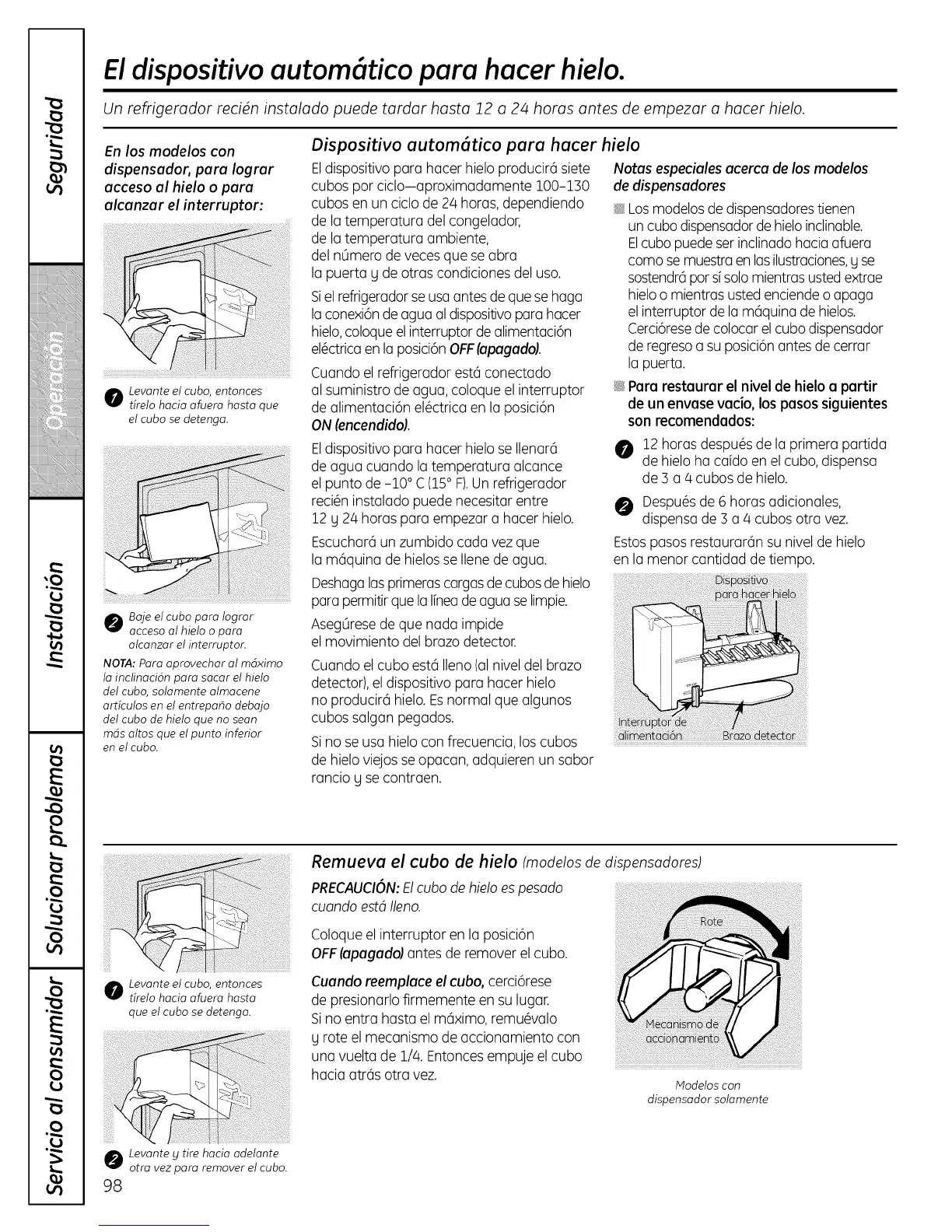hielo,coloqueel interrupter dealimentaci6n