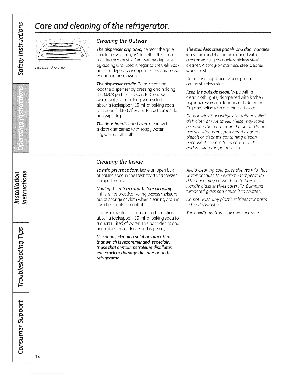 Care and cleaning of the refrigerator.
