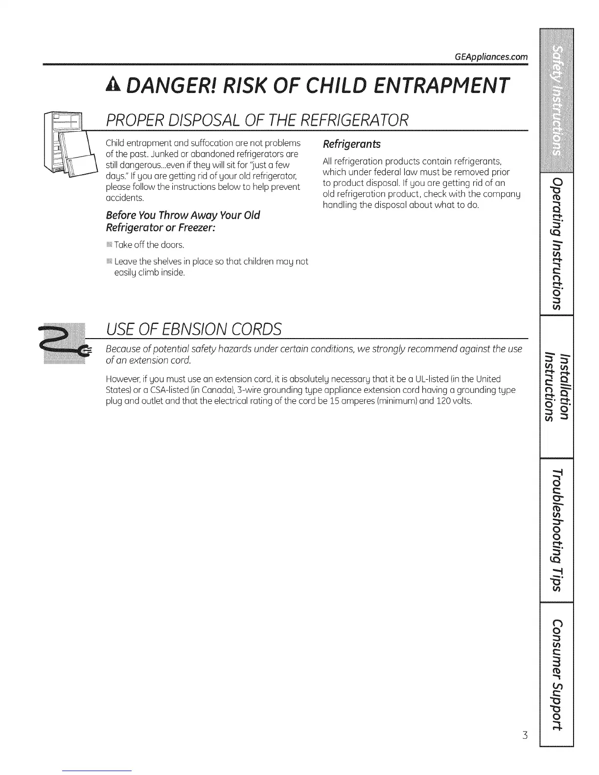 States)or a CSA-listed(inCanada),3-wire grounding tgpe appliance extension cord having a grounding tgpe