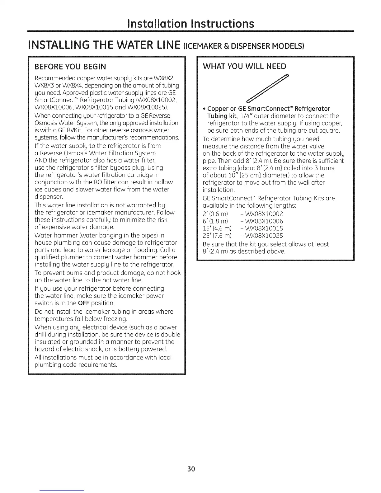 GE Sm(]rtConnect TMRefriger(]tor Tubing Kits (]re