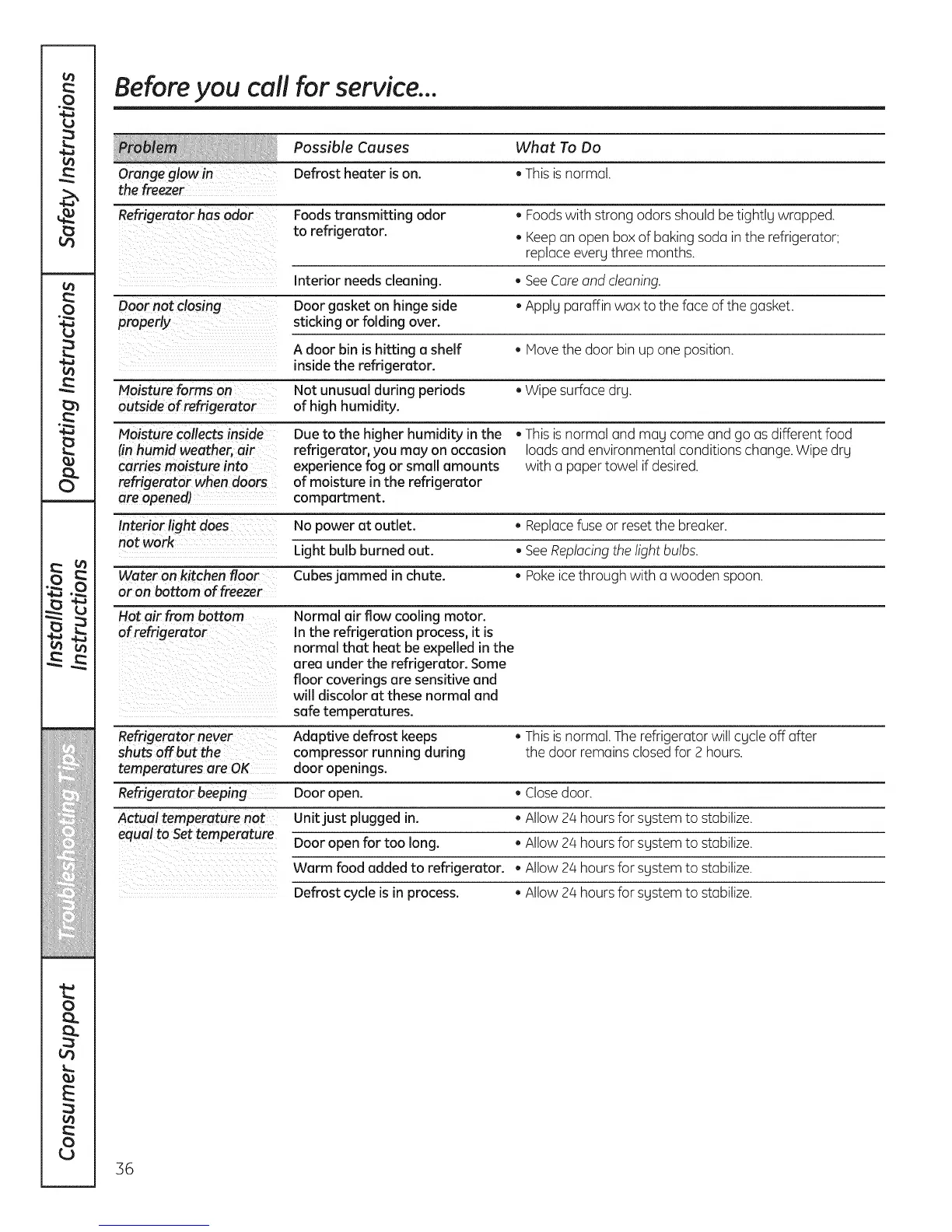 Warm food added to refrigerator. • Allow 24 hours for sgstem to stabilize.