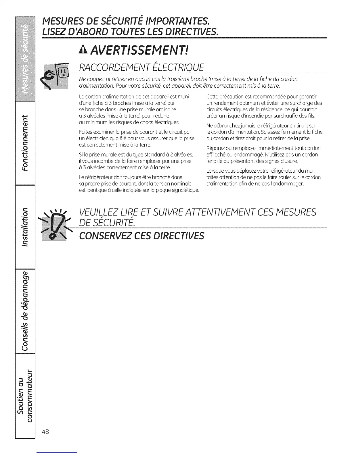 d'olimentotion. Pour votre sdcurit@,cet opporeil dolt @trecorrectement mis 8 Io terra