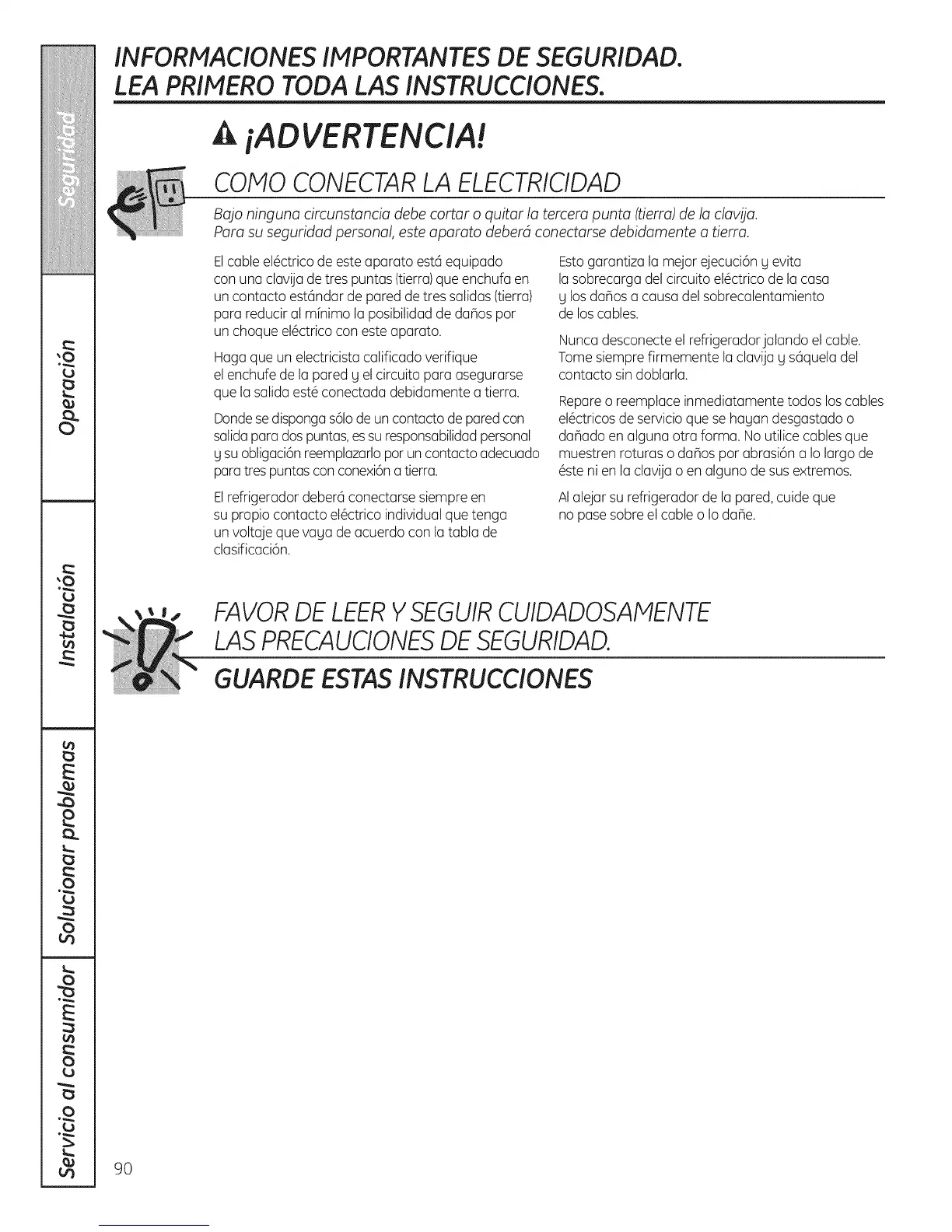Para su seguridad personal, este aparato deberd conectarse debidamente a tierra.
