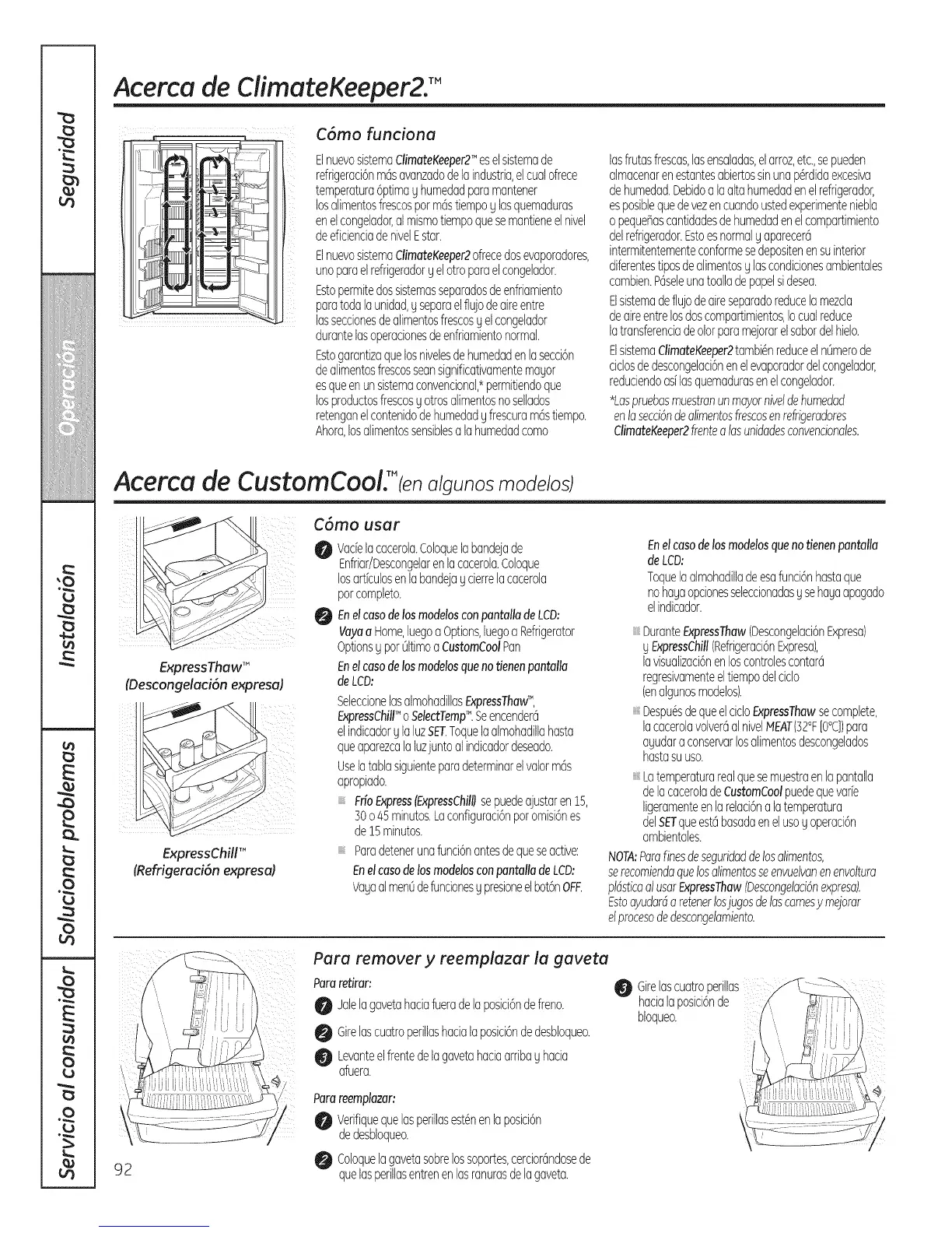Para remover y reemplazar la gaveta