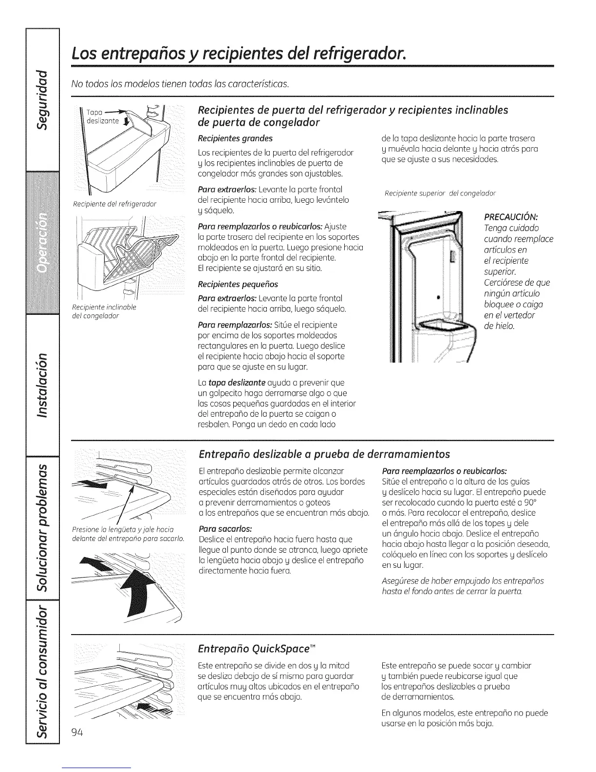 Los entrepaflos y recipientes de! refrigerador.