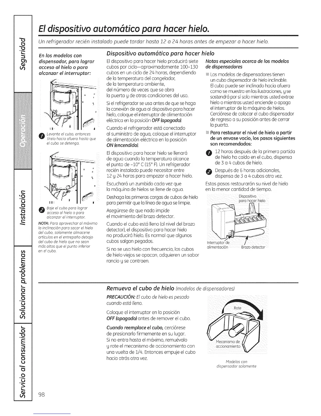 Sino se usahielo con frecuencia, los cubos atimentaci6n Brazodetector
