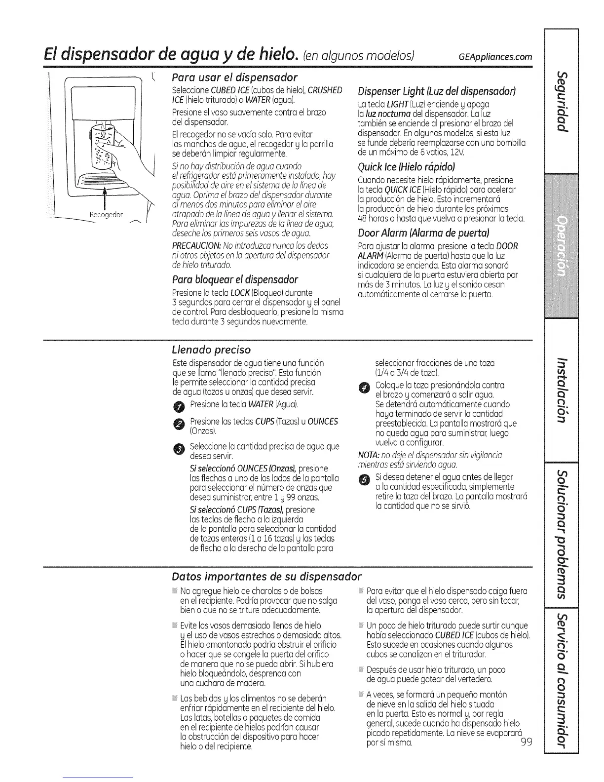 E!dispensador de agua y de hielo. (en algunos modelos) GEAppliances.com