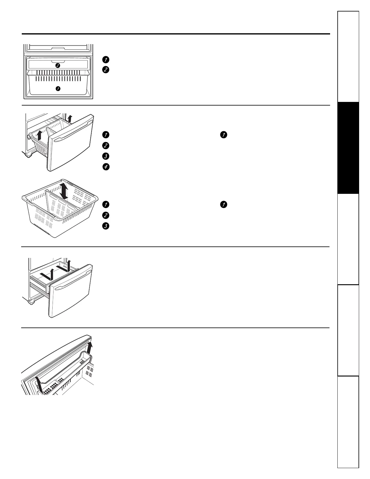 To remove: Pull the drawer forward and up to