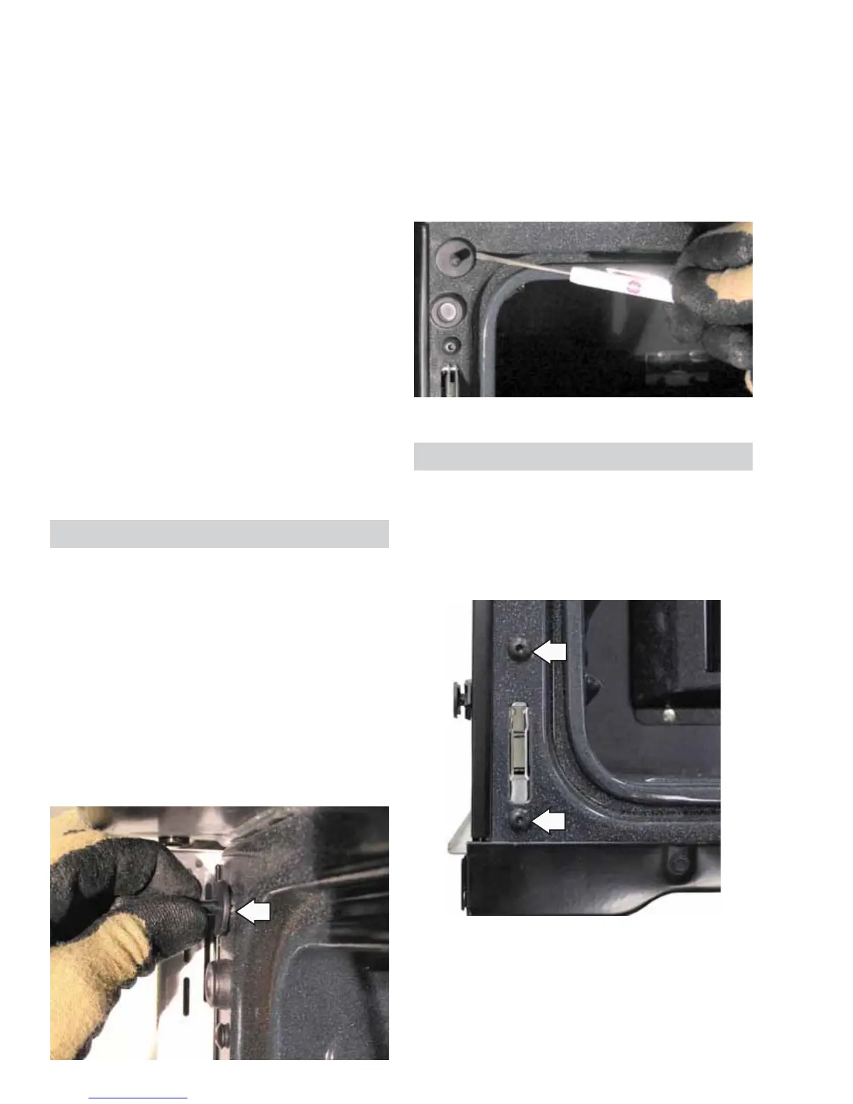 Each lower oven door hinge receiver is attached to