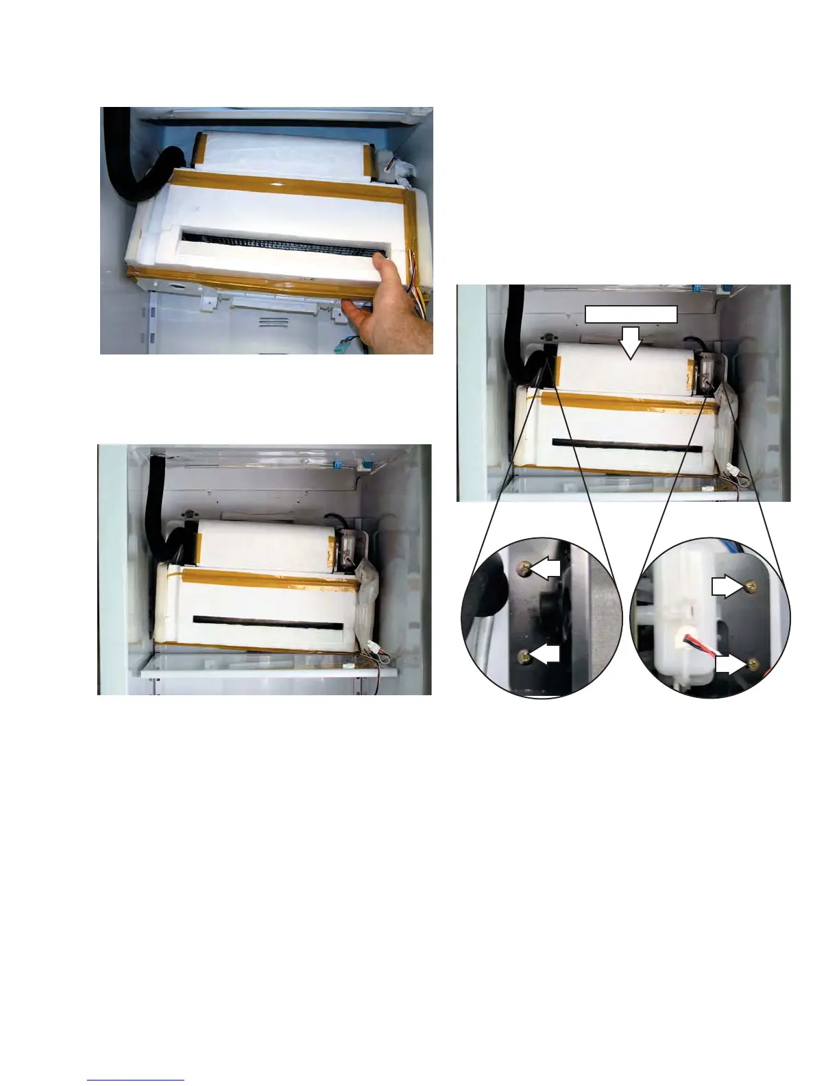 1. Access the fresh food evaporator assembly.