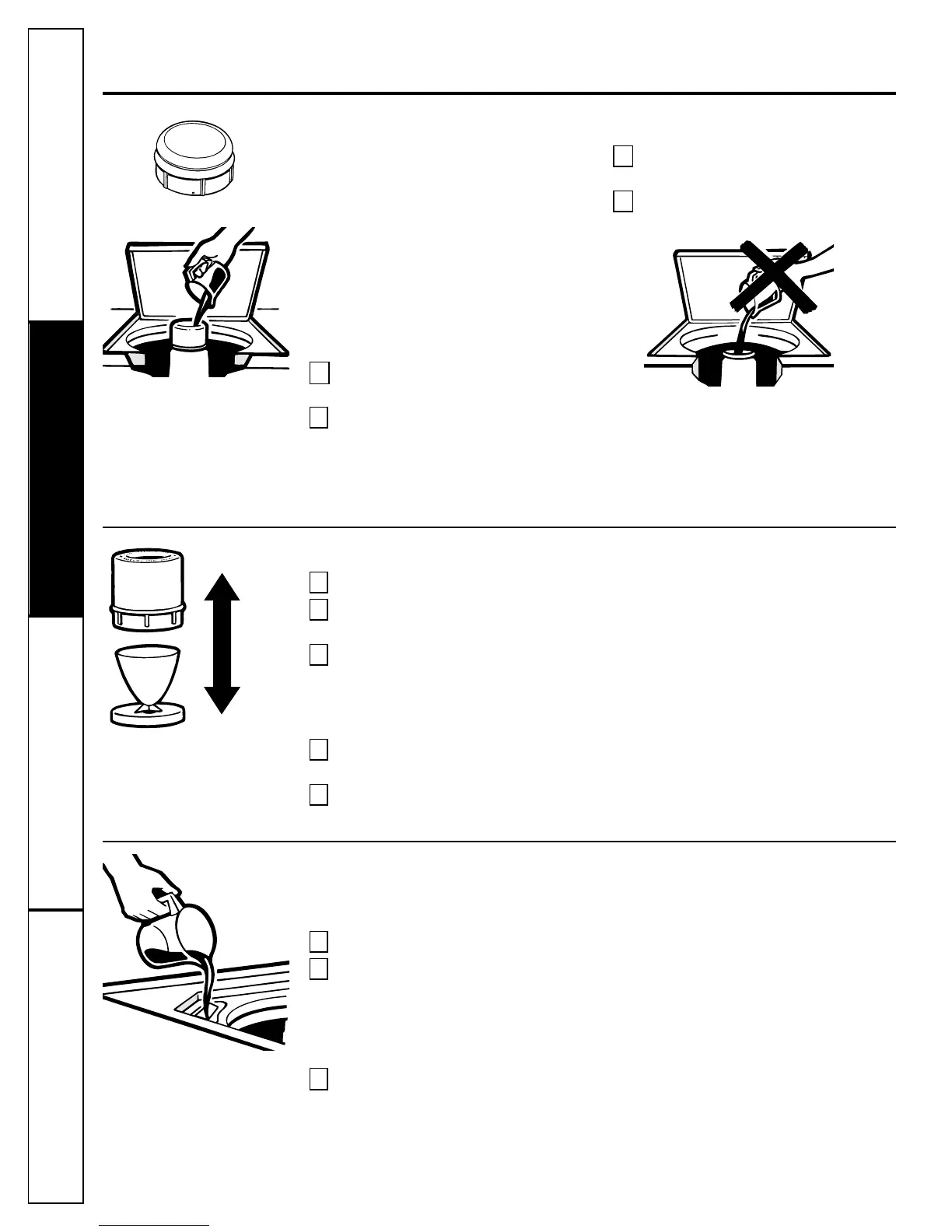 en el embudo. Evite salpicar o llenar el dosificador en exceso. Si prefiere usar blanqueador