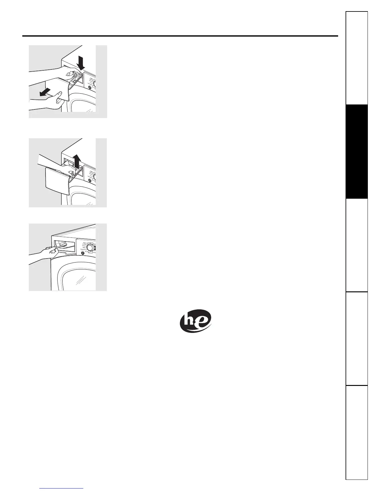 l’étiquette de détergent. Rinsez à l’eau chaude les étiquettes et le tiroir pour enlever