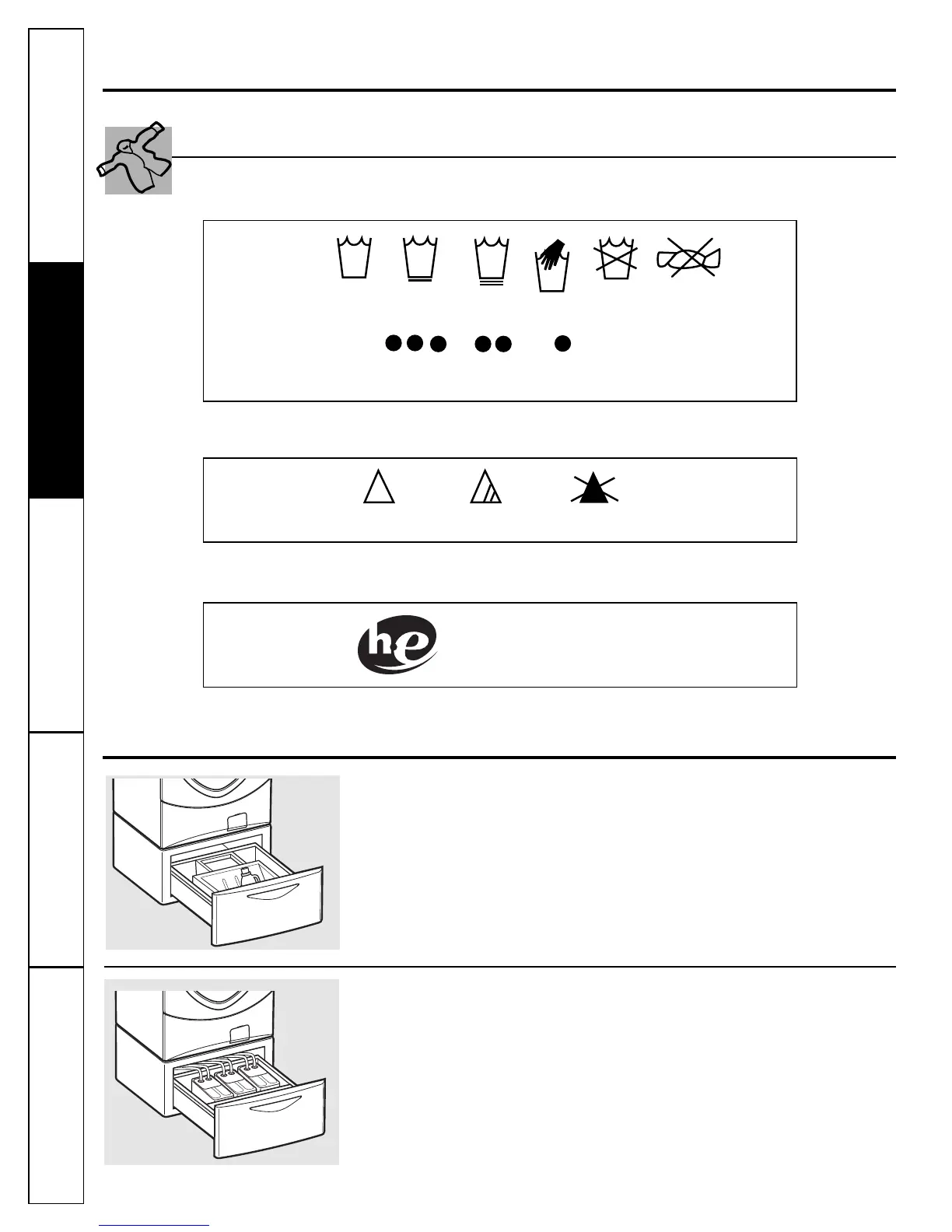 A continuación se muestran “símbolos” de etiquetas de cuidado de tejido que afectan a las prendas que se lavan.